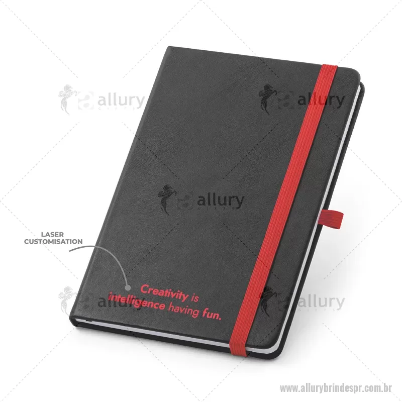 Bloco / Caderno A5 com capa dura em PU com 160 páginas pautadas. Caderno A5 de capa dura em PU com substrato colorido permitindo a gravação a laser da cor do elástico. Contém 160 páginas pautadas, elástico, fita separadora, suporte para esferográfica (não inclusa) e bolso em papel na parte traseira da capa. Medidas do produto: 14,0 x 21,0 cm - - ALLPRBLC181