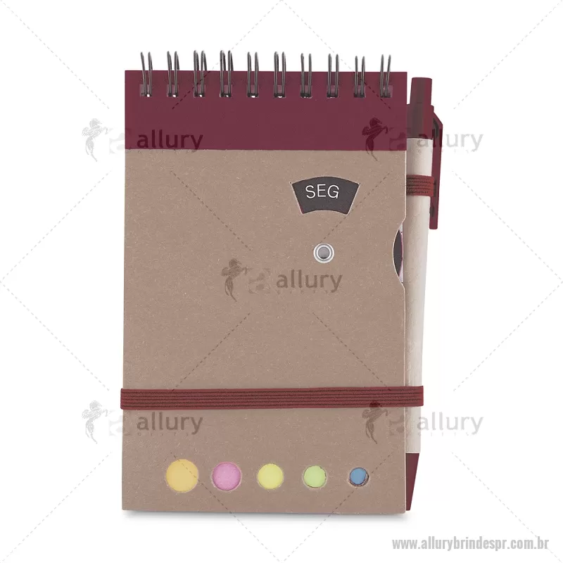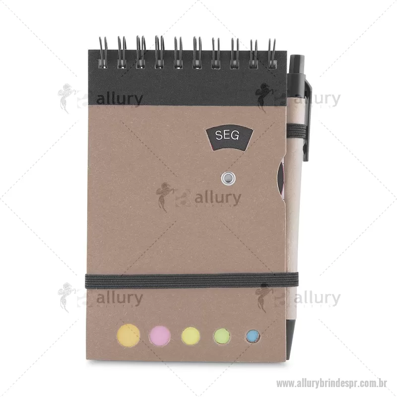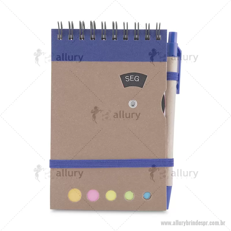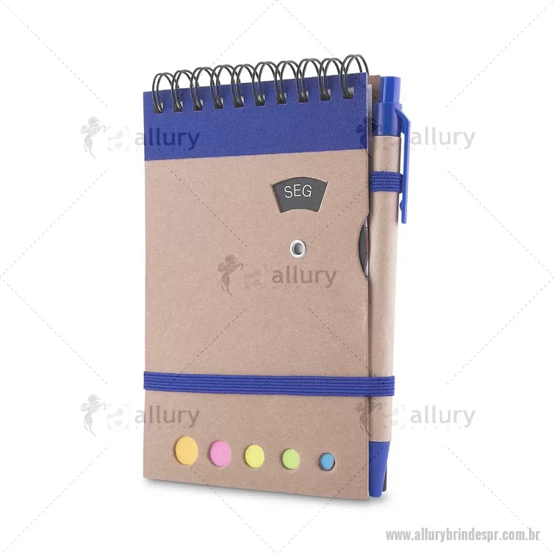 Mini caderno A6 com caneta com capa em papel kraft, com 70 folhas pautadas e blocos adesivos (sticky notes) coloridos. Acompanha disco rotativo na capa com os dias da semana e caneta produzida em papelão reciclado com detalhes em plástico e escrita em azul. Peso do Produto: 0,088kg (Caderno) Peso do Produto: 0,004kg (Caneta) Dimensão Produto: 14,5x9cm (Caderno) Dimensão do Produto: 3,6xø0,9cm (Caneta) - - ALLPRBLC275