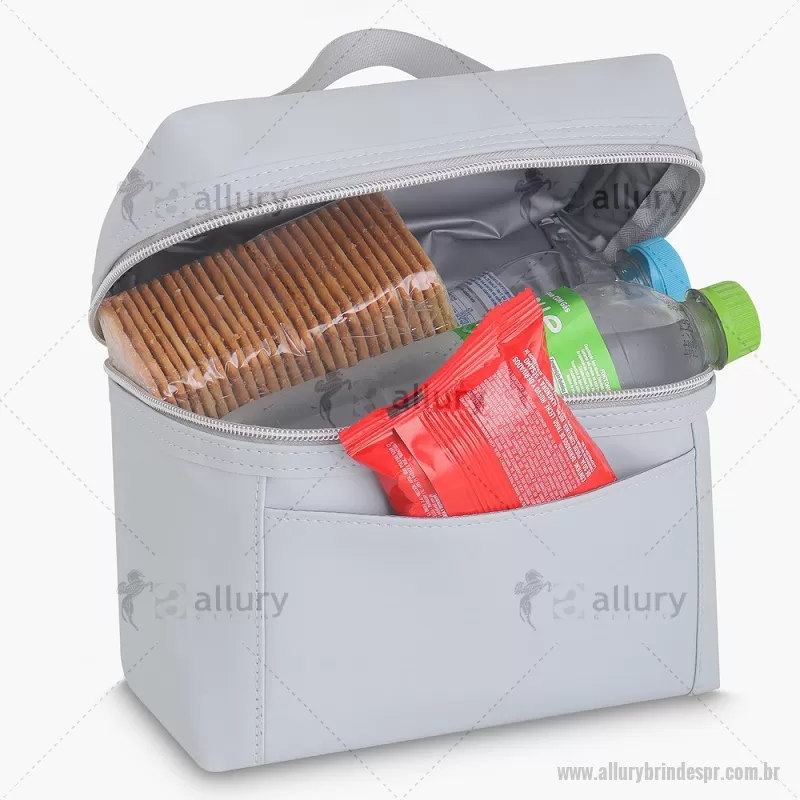 Bolsa térmica 5 lts em PU com zíper, parte interna costurada, com alça de mão e bolso frontal. Dimensão Produto: 18x21,5x13cm (AxLxP) Peso do Produto: 0,150kg Volume: 5L - - ALLPRBT095