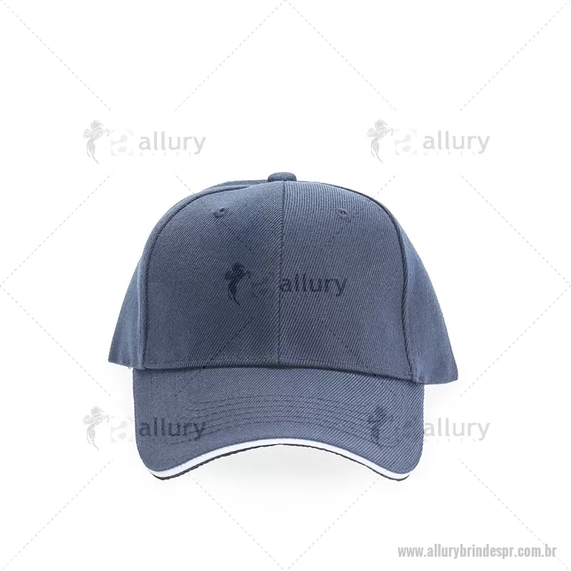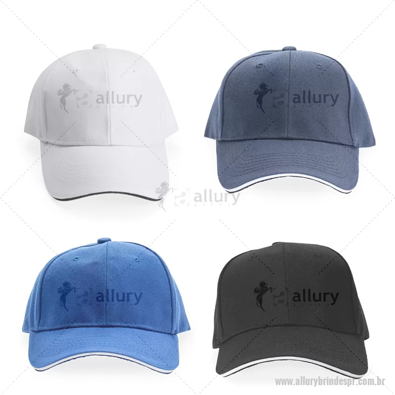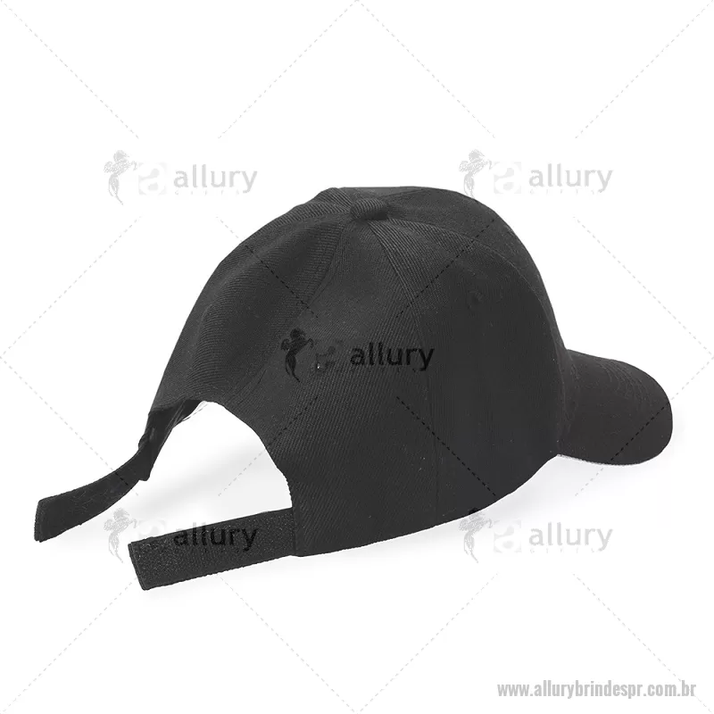 Boné Poliéster Aba Curva Descrição: Boné confeccionado em poliéster resistente a respingos dágua e com aba curva. Em tamanho único, ele é ajustável por meio de suas faixas de velcro na parte de trás. Altura : 13 cm x Largura : Aba: 18 cm Profundidade : Aba: 7 cm x Circunferência : 55,5 cm Peso aproximado (g): 73 - - ALLPRBON010