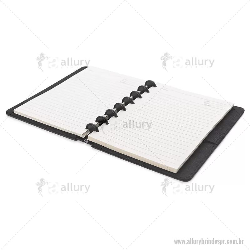 Caderno de anotações com capa dura em material sintético, contendo: Miolo de 80 folhas pautadas na cor bege; Porta Canetas; Porta Cartões; Obs.: As folhas do miolo são destacáveis. Dimensão do produto: 22,3x18,0x2,1cm (AxLxP) Peso do Produto: 0,438kg - - ALLPRCAD025