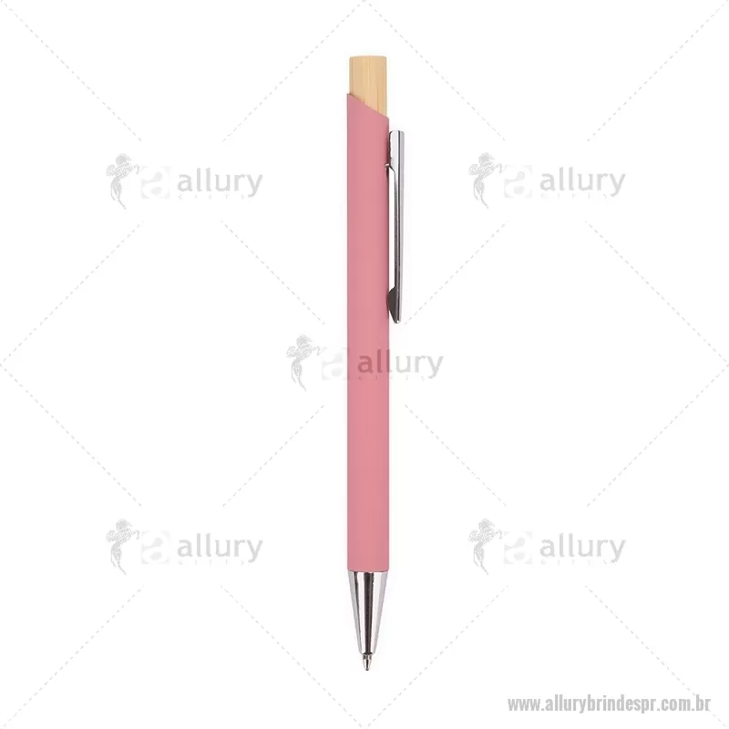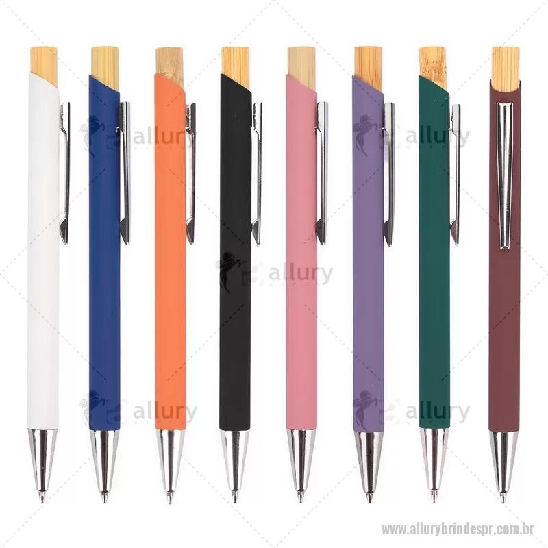 Caneta esferográfica azul 1,0 mm com corpo metálico e acionamento por clique em bambu. Oferece escrita leve, confortável e precisa para o uso diário. - - ALLPRCMT297