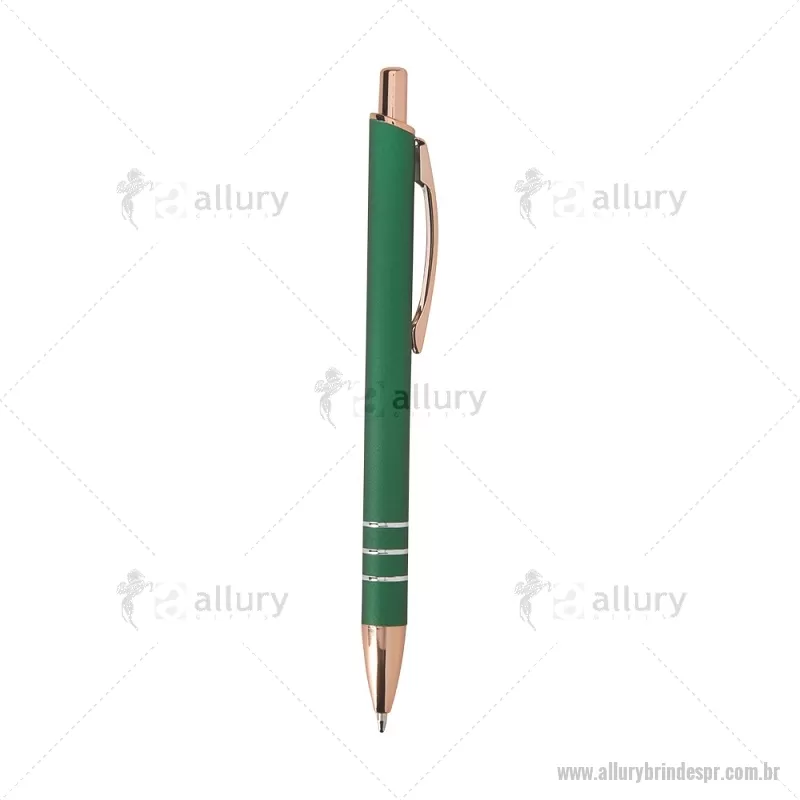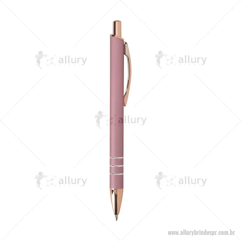 Caneta em metal com acionamento por clique e carga esferográfica azul de 1,0 mm. Leve e confortável, garante escrita precisa e uso prático no dia a dia. - - ALLPRCMT303