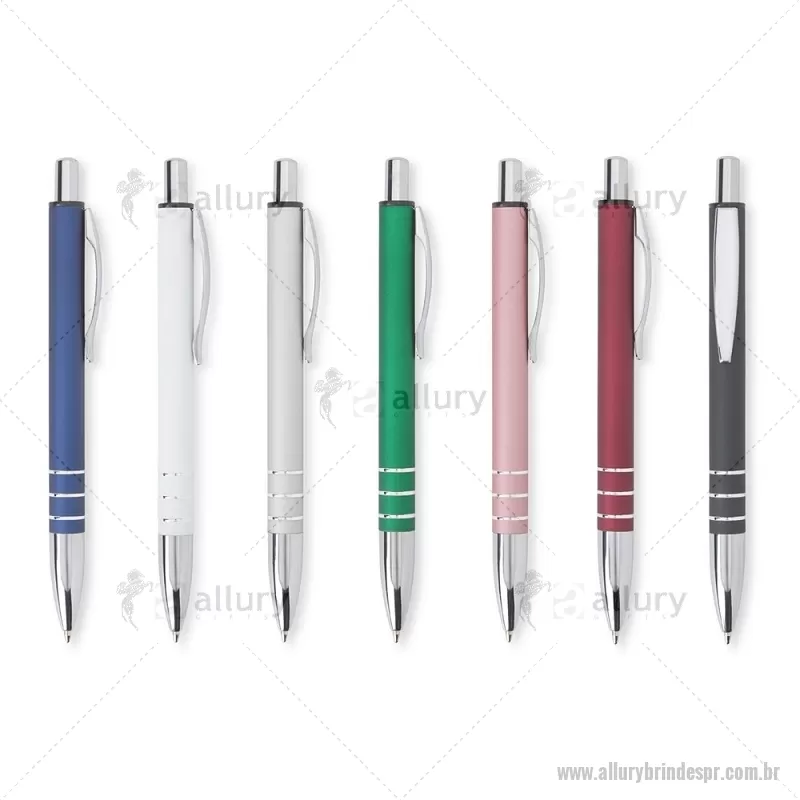 Caneta metálica com acabamento fosco, clipe metálico e ponteira plástica. Carga esferográfica azul 1.0mm e acionamento por clique. Largura : 1,6 cm x Comprimento : 14,4 cm Peso aproximado (g): 18 - - ALLPRCMT315
