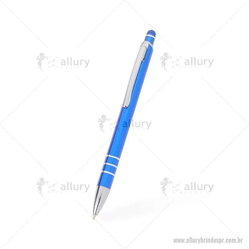 Caneta metálica com acionador touch, clipe metálico e ponteira plástica. Carga esferográfica azul 1.0mm e acionamento por clique. Largura : 1,4 cm x Comprimento : 14,4 cm Peso aproximado (g): 16 - - ALLPRCMT289