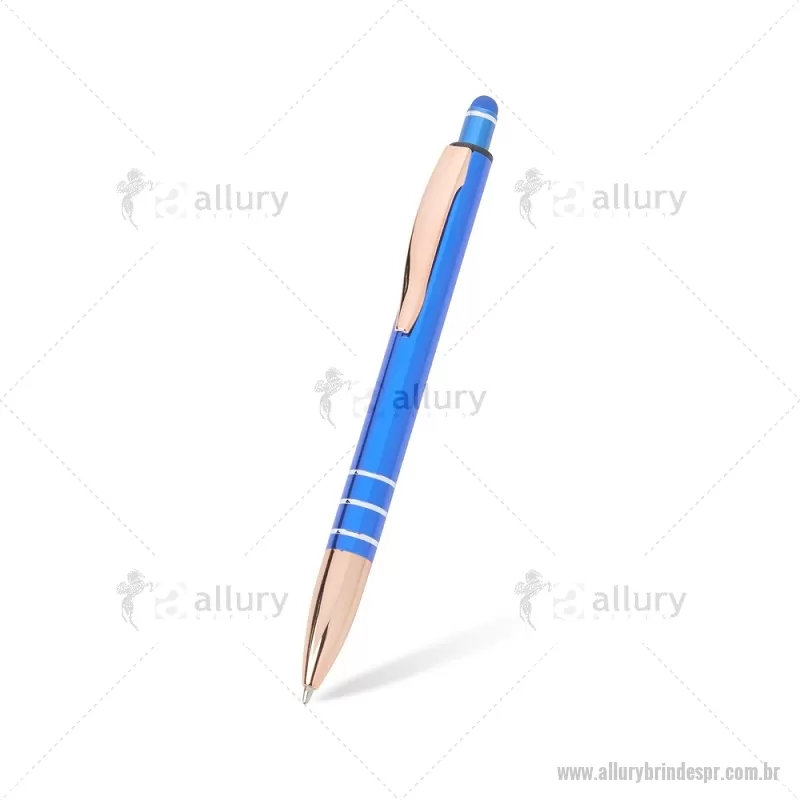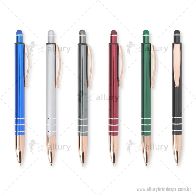 Caneta Metal Touch Caneta metálica com acionador touch, clipe metálico e ponteira plástica. Carga esferográfica azul 1.0mm e acionamento por clique. Largura : 1,6 cm x Comprimento : 14,4 cm Peso aproximado (g): 17 - - ALLPRCMT291