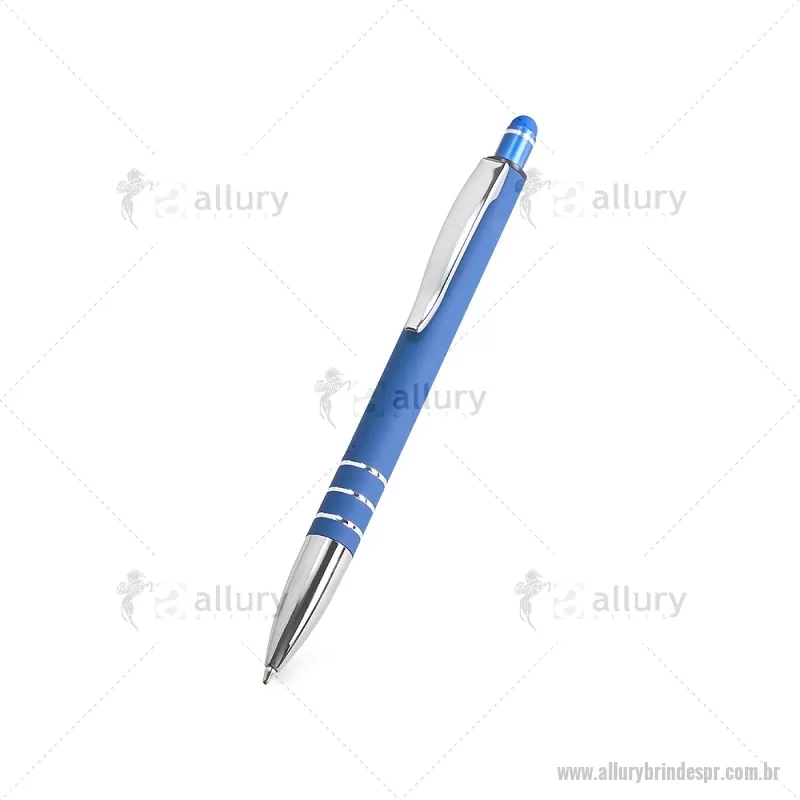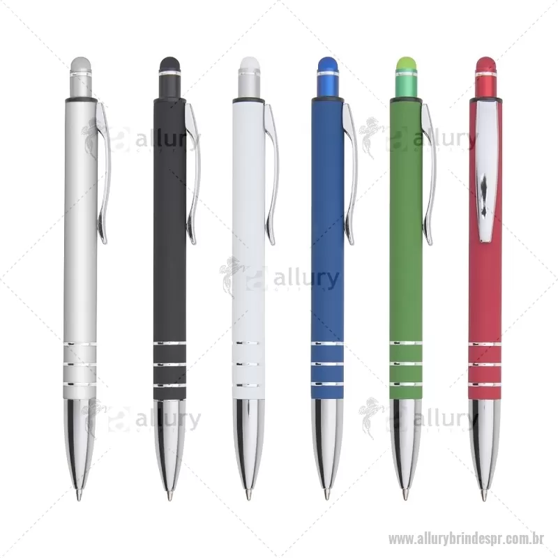 Caneta Metal Touch Caneta metálica touchscreen com acabamento emborrachado, acionamento por clique e carga esferográfica azul 1.0mm. Altura : 14,4 cm x Largura : 1,6 cm Peso aproximado (g): 18 - - ALLPRCMT292