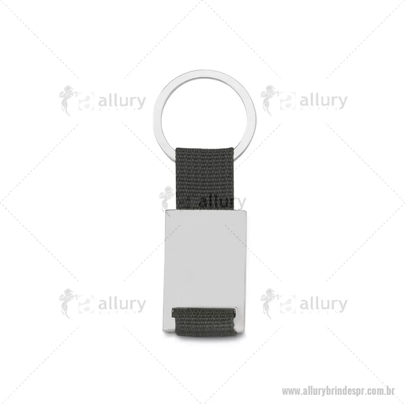Chaveiro de metal retangular com detalhes em nylon + caixa com berço aveludado. Obs.: Frente e versão são iguais. Dimensão Produto: 8,5x3,4cm (AxL) Peso do Chaveiro: 0,025kg Peso do berço aveludado: 9g - - ALLPRCHV214