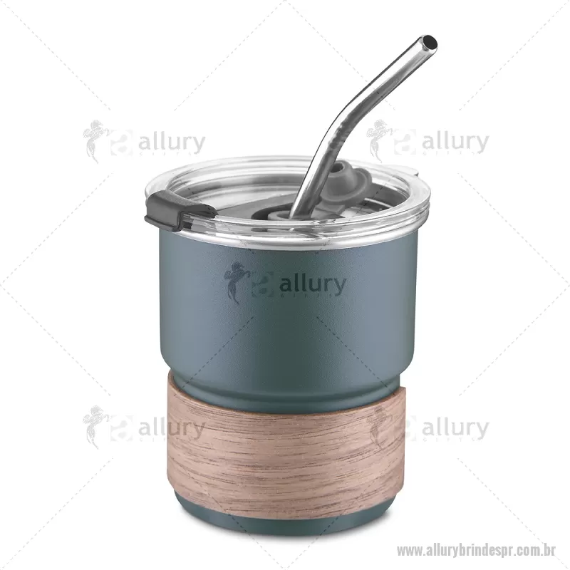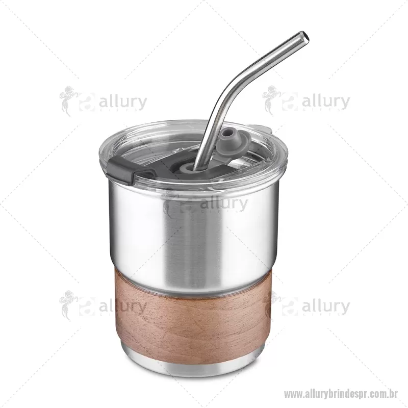 Copo em inox com Canudo Copo de parede simples em aço inox 304 com capacidade de 250ml, com canudo em inox. Tampa em plástico poliestireno (PS) que também possui um bico como forma alternativa de uso. Com pegador em fibra de noz. Possui acabamento externo com pintura fosca. Peso do Produto: 0,100kg Dimensão do Produto: 9xø7,5cm - - ALLPRCPO150