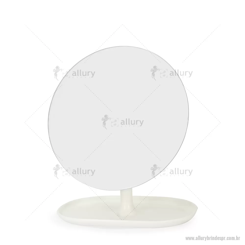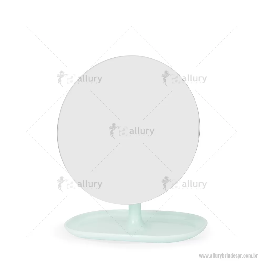 Espelho de Mesa Plástico Descrição: Espelho de mesa com estrutura compacta em plástico de fácil montagem. Conta com base fixa e pedestal giratório em 360 graus que permite ajuste prático em diferentes ângulos e posições. Altura : 25 cm x Largura : 10,7 cm x Comprimento : 15,8 cm Tamanho total aproximado (CxL): Diâmetro: 16 cm Peso aproximado (g): 195 - - ALLPRFEM118