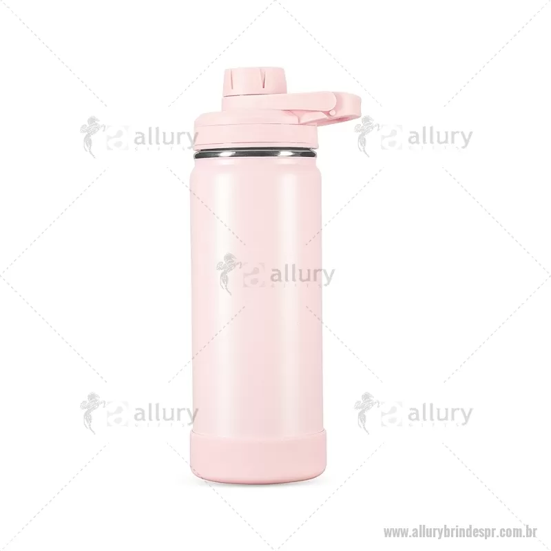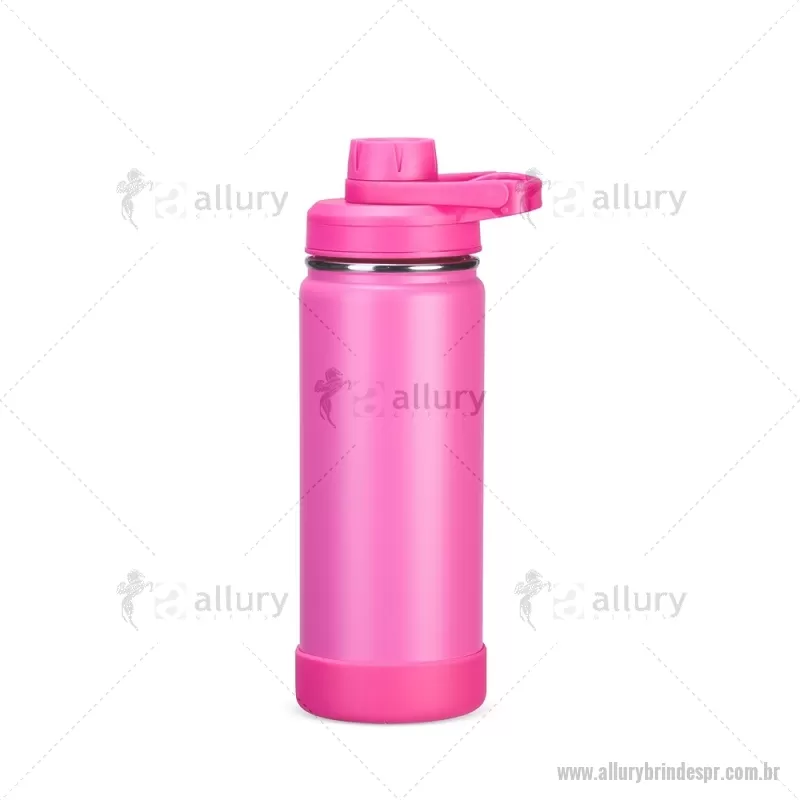 Garrafa Térmica 550ml inox com pintura eletrostática. Mantém a temperatura de líquidos por mais tempo graças à estrutura de parede dupla e ao isolamento a vácuo. Possui tampa plástica rosqueável com protetor de bocal e alça fixa. Acompanha protetor removível em silicone para a base. Altura : 22,5 cm x Largura : 7,4 cm x Circunferência : 23,3 cm Tamanho total aproximado (CxL): Diâmetro: 5,5 cm Peso aproximado (g): 290 - - ALLPRGAT172