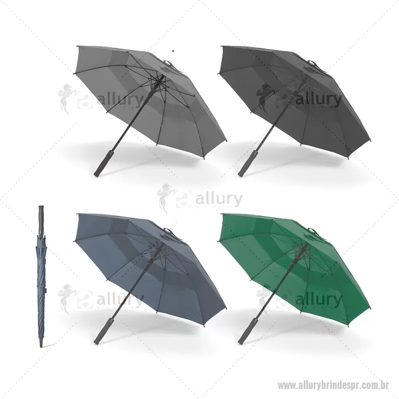 Guarda-chuva em 100% poliéster reciclado 190T (100% rPET) com abertura automática, com varetas em fibra de vidro e pega em ABS reciclado. Guarda-chuva com abertura automática e à prova de vento. Fornecido em bolsa de poliéster reciclado. Medidas:ø1055 x 840 mm Peso do Produto (g.): 543 - - ALLPRGCH051