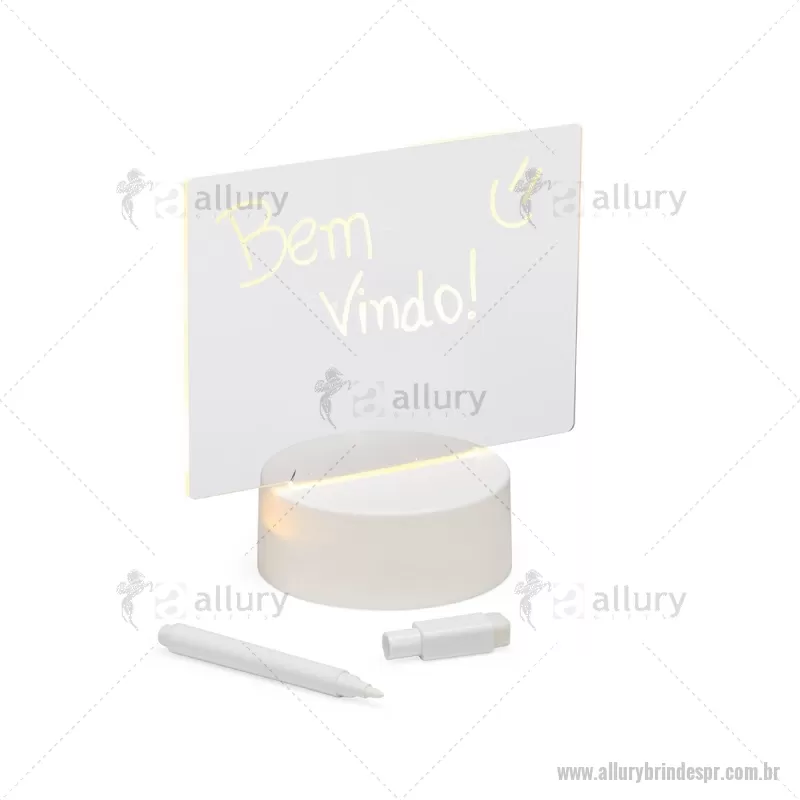 Luminária de Mesa Led Deixe qualquer espaço mais aconchegante e repleto de recadinhos incríveis com a nossa luminária. Com sua tela acrílica 3D, é possível soltar a criatividade e deixar mensagens inspiradoras, lembretes importantes ou até desenhos fofos, tudo de um jeito prático e super divertido! Com um funcionamento super simples, ela se conecta com cabo via USB integrado à base plástica ou por meio de 3 pilhas AAA (1.5V) não inclusas. Além disso, acompanha uma caneta plástica com apagador integrado, tornando a experiência ainda mais interativa e funcional. Essa luminária é perfeita para iluminar o ambiente e deixar recadinhos incríveis do seu jeito! Altura : 15,3 cm x Largura : 15 cm x Profundidade : 8,6 cm Tamanho total aproximado (CxL): Caneta: 11,2 cm x 1,2 cm Peso aproximado (g): 128 - - ALLPRLL031