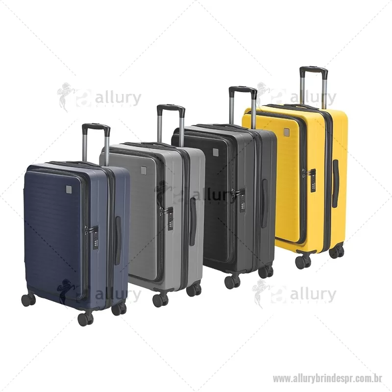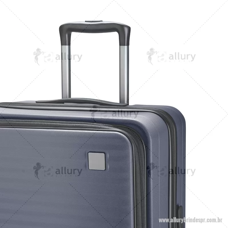 Mala de viagem com capacidade de 66 litros, fabricada em plástico ABS resistente e equipada com cadeado TSA embutido para maior segurança. Possui abertura frontal com compartimentos internos organizadores, zíperes e cinta compressora, além de zíper expansível que amplia o espaço interno. Conta com puxador retrátil de três níveis, duas alças de mão, apoios e ganchos laterais, além de rodinhas com giro 360° para deslocamento fácil. Acompanha plaquinha metálica grafite para personalização. - - ALLPRMC250