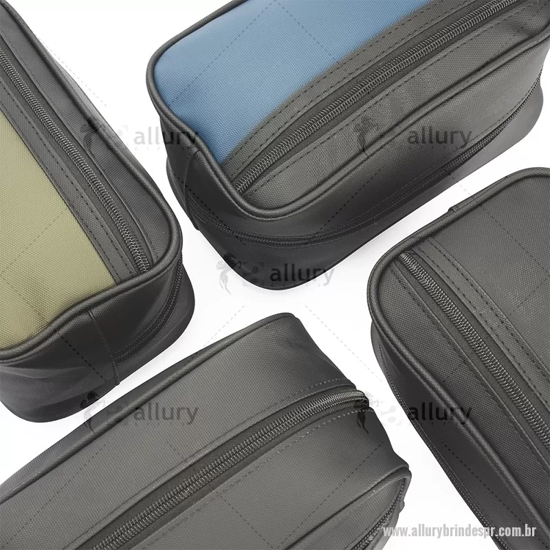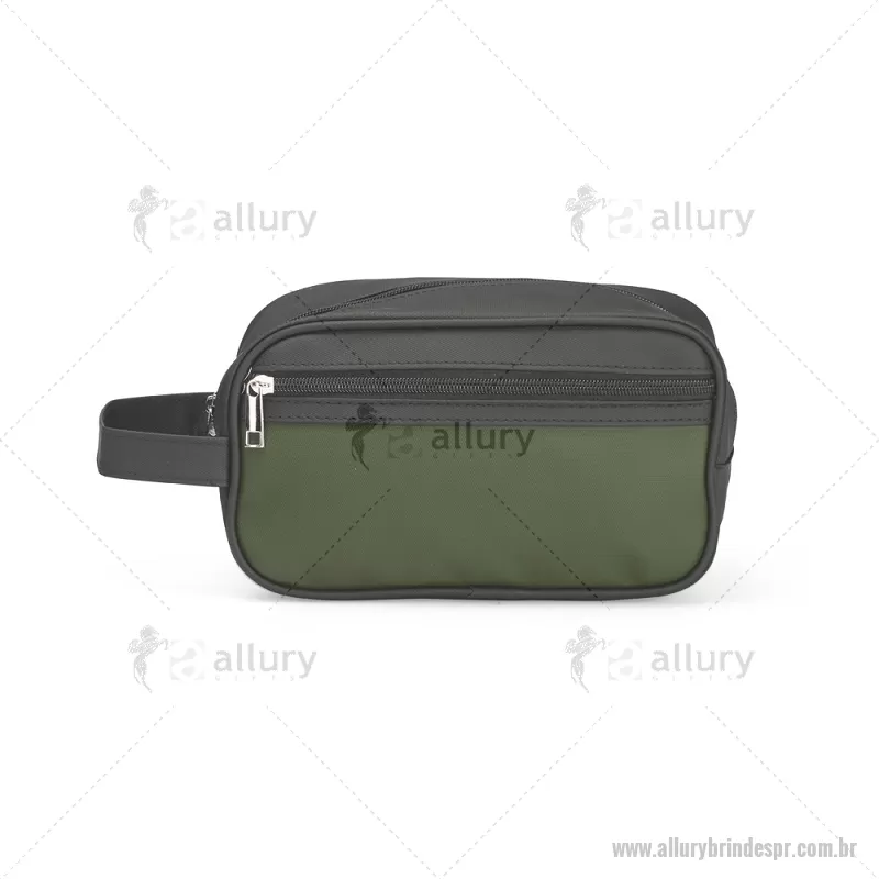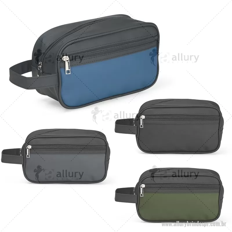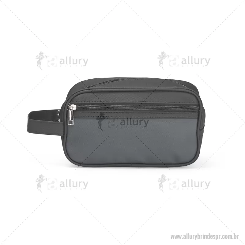 Nécessaire em couro sintético impermeável com fechamento em zíper. Possui bolso frontal também com zíper e alça lateral de mão. Altura : 14 cm x Largura : 24 cm x Profundidade : 9,5 cm Peso aproximado (g): 173 - - ALLPRNC154