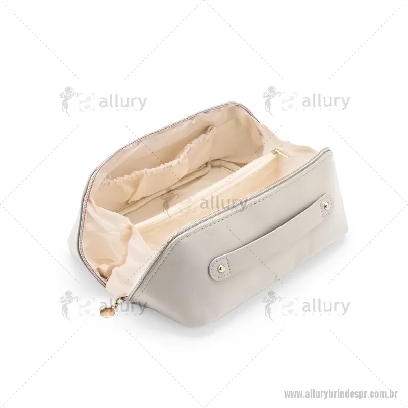Nécessaire em (PU) poliuretano impermeável com abertura em 180 graus inspirada no formato de concha. O compartimento interno conta com dois bolsos laterais abertos e um, localizado na parte central, com fechamento em zíper. Possui alça para transporte. Altura : 11 cm x Largura : 22,5 cm x Profundidade : 9,5 cm Peso aproximado (g): 108 - - ALLPRNC143