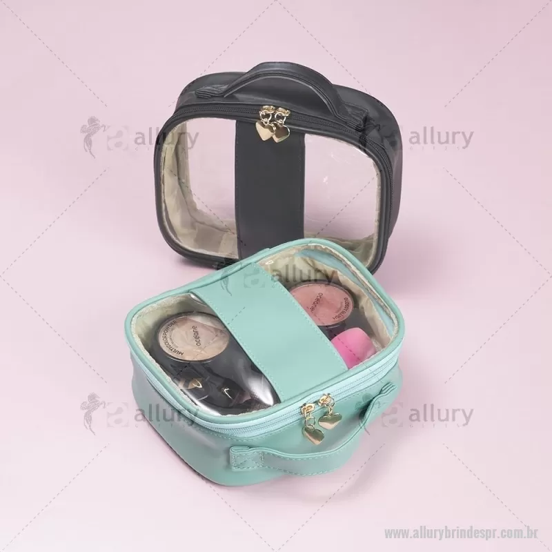 Necessaire impermeável de PVC e PU tamanho P, parte interna com revestimento em tecido, possui alça superior para as mãos, e detalhe dourado em formato de coração no zíper. Medidas nécessaire: 17 cm x 20,5 cm x 7,2 cm Peso aproximado (g): 134 - - ALLPRNC100