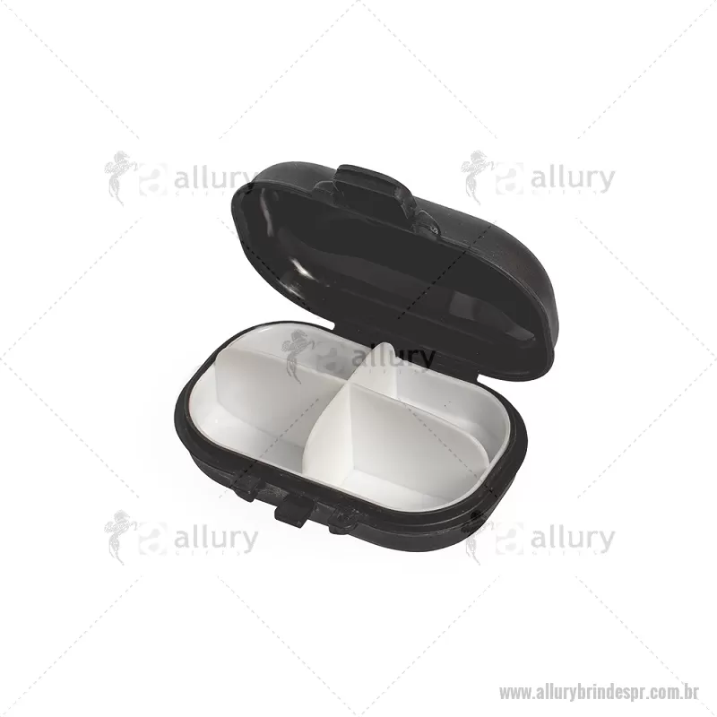 Porta-Comprimidos Plástico Descrição: Porta-comprimidos feito em plástico. Possui compartimento removível com quatro divisórias, o que facilita a limpeza e ajuda a organizar medicamentos ou pequenos objetos. Largura : 6,5 cm x Espessura : 3,7 cm x Comprimento : 9,6 cm Peso aproximado (g): 36 - - ALLPRPCP019