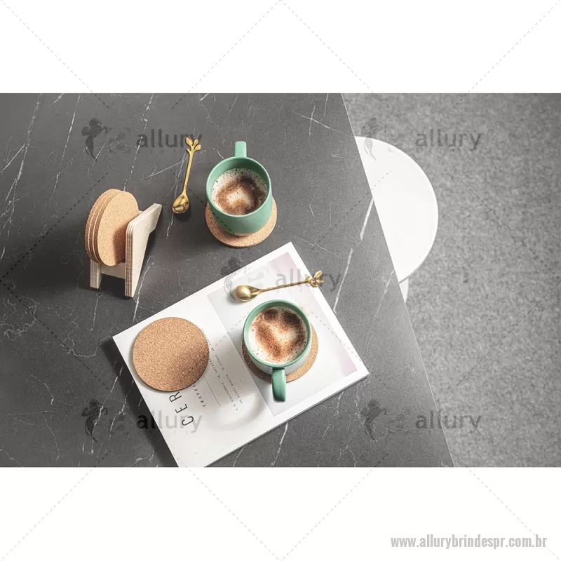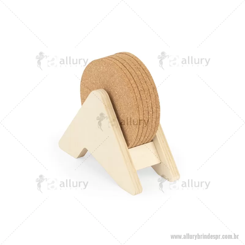 Porta copos em madeira com 6 bases para copos em cortiça. Desfrute da sua bebida evitando marcas na mesa. Certificação EU Food Grade. A cor e o resultado da impressão nos materiais naturais pode variar entre produtos. medidas: 140 x 92 x 78 mm Peso do Produto (g.): 80 - - ALLPRPCO010