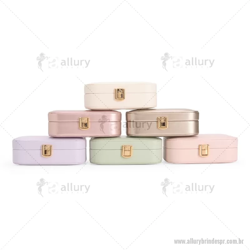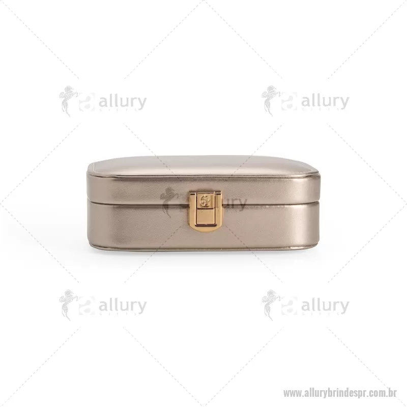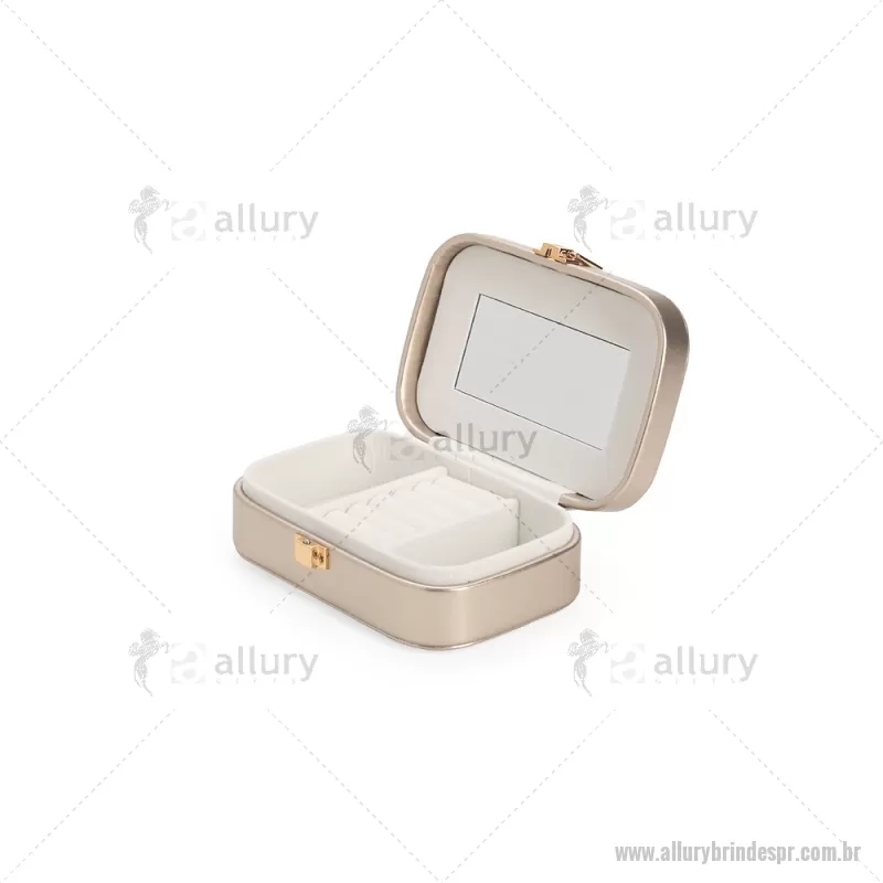 Porta-joias com espelho em poliuretano (PU) e revestimento interno em tecido aveludado. Conta com espelho interno, duas divisórias, repartição almofadada com ranhuras e trava de segurança. Medidas produto: Altura : 5 cm x Largura : 10 cm x Comprimento : 15 cm Peso aproximado (g): 167 - - ALLPRFEM123