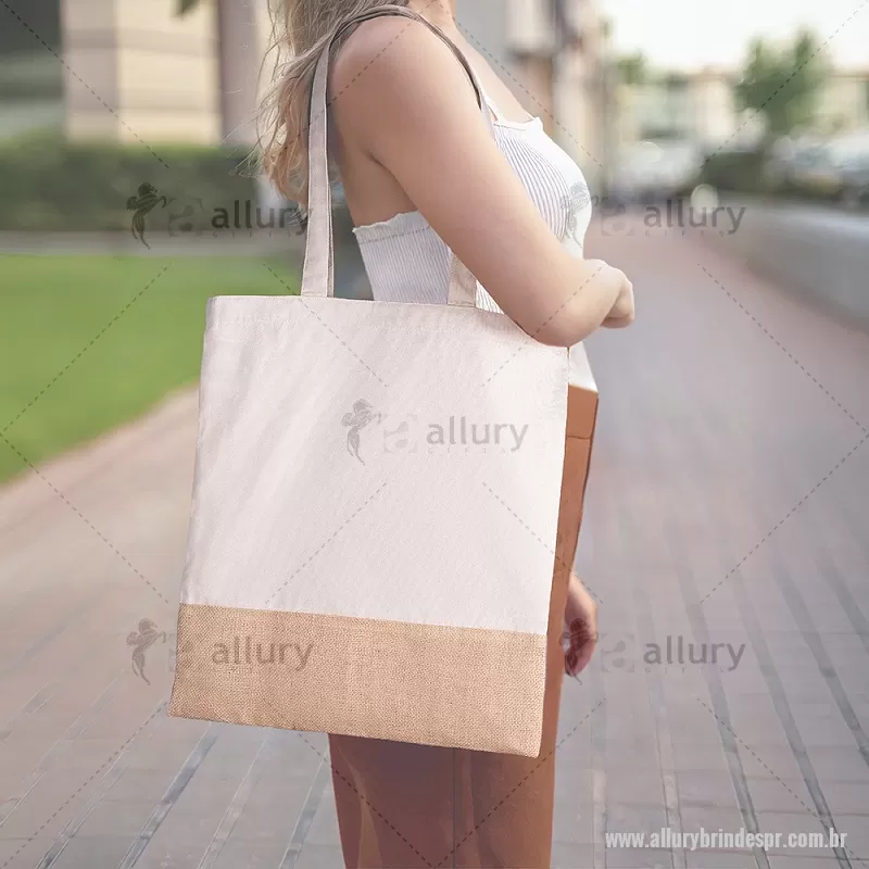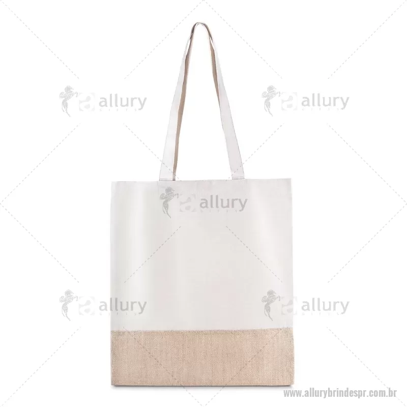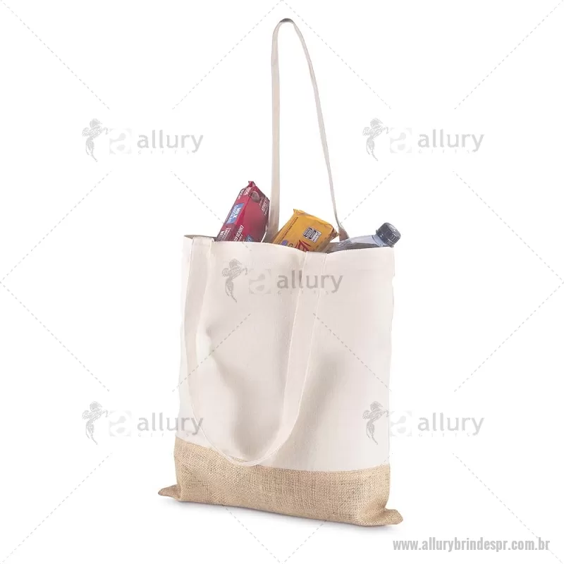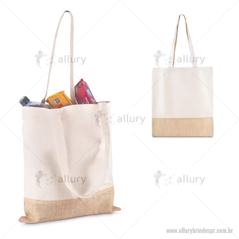 Sacola em Algodão e Juta 220g/m² (42x38x8,5cm) Sacola em Algodão Cru 220g/m² com detalhe em Juta. Alça com altura de 30 cm, ideal para transporte. Dimensão Produto: 42x37,5x8,5cm (AxLxP) Peso do Produto: 0,120kg Volume: 13L - - ALLPRSAC106