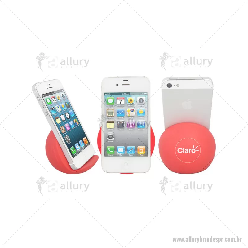 Porta celular / Apoio para smartphone de mesa Personalizado. Feito em vinil oca e disponível em várias cores. Material: Vinil - Especificação: Vinil (Policloreto de vinil) Disponível nas cores: vermelho, azul, azul escuro, azul claro, verde, verde escuro, verde claro, amarelo, laranja, preto, branco. Informação: Pantones específicos a partir de 1000 peças. Tipo de gravação: Tampografia Area de gravação: 40mm Ø Medida Produto: 65mm A x 75mm L x 70mm Peso: 45g Quantidade Mínima: 100 un - - ALLPRTEC065