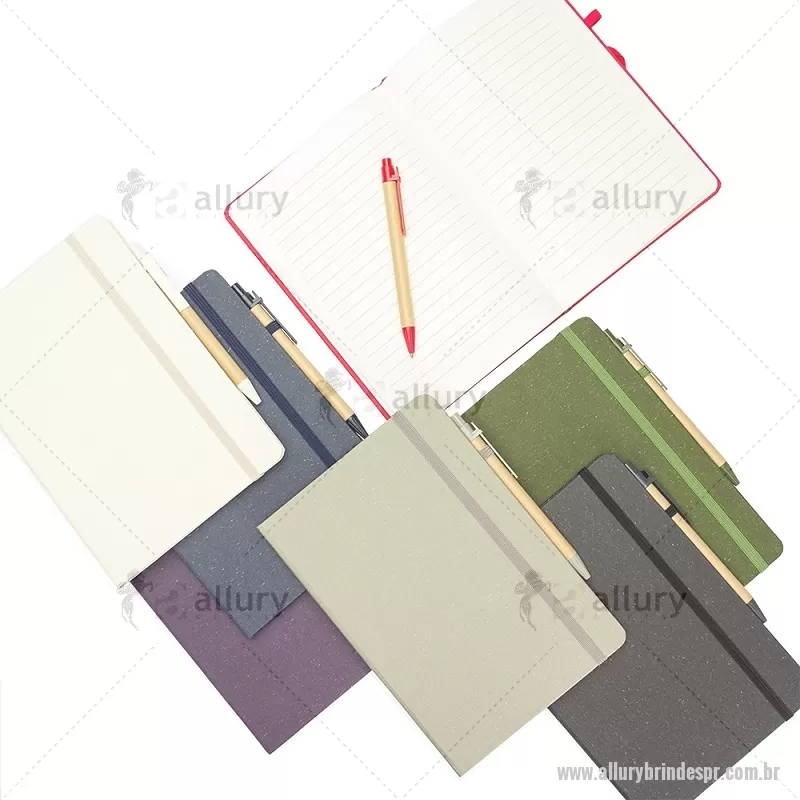 Bloco Fibra de Arroz com Caneta Caderneta ecológica com capa em fibra da palha de arroz. Contém aproximadamente 80 folhas amareladas com pauta, além de duas folhas de guarda, uma fita elástica para fechamento e porta-canetas em elástico. Acompanha uma caneta esferográfica de carga azul de 1,0mm com corpo em papelão e clip, acionamento por clique e ponteira em plástico. Largura : 15,5 cm x Espessura : 1,3 cm x Comprimento : 21 cm Tamanho total aproximado (CxL): Caneta: 14 cm x 1 cm Peso aproximado (g): 246 - - ALLPRBLC269