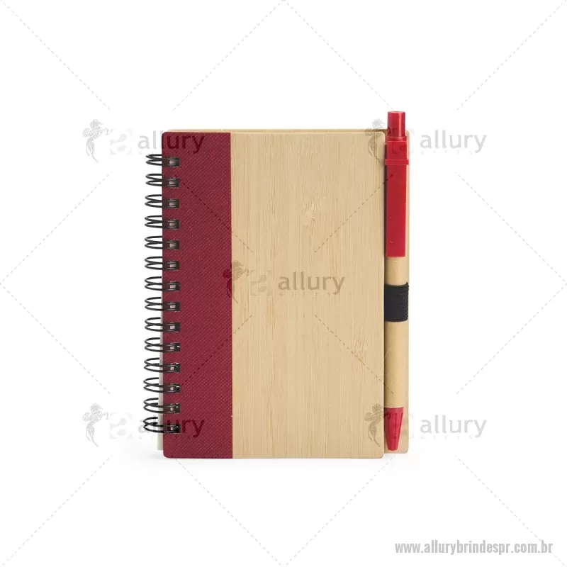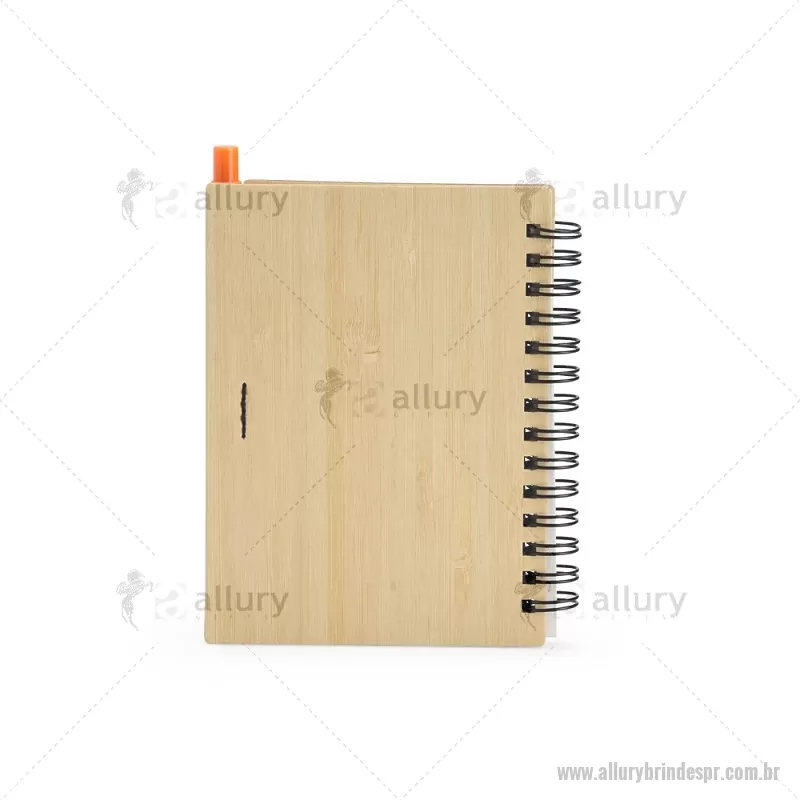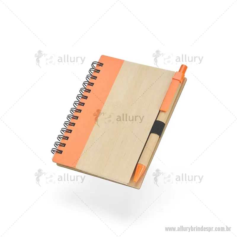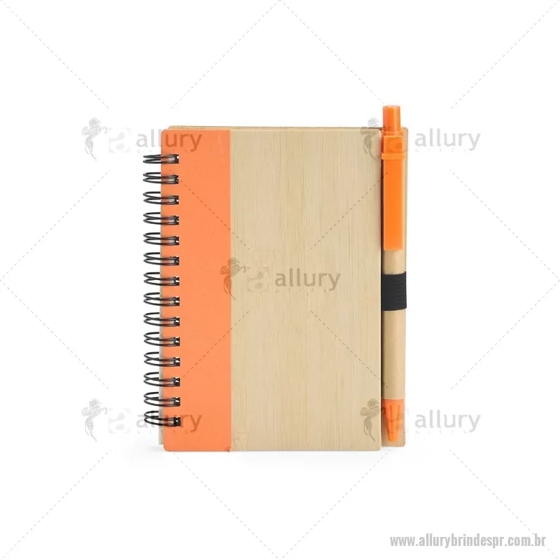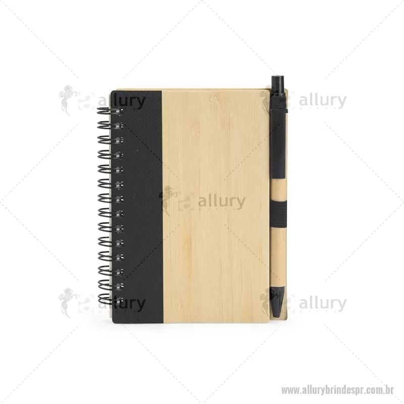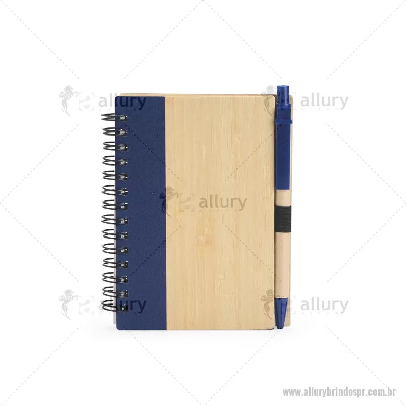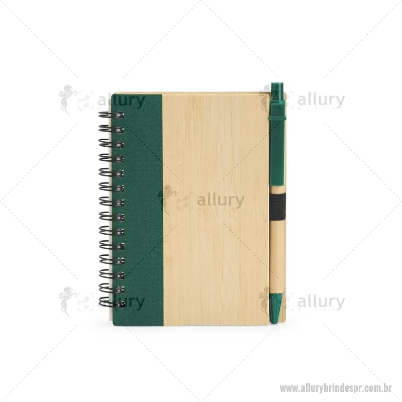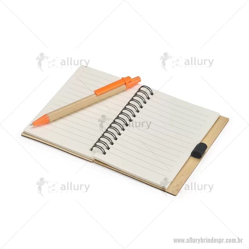 Caderno Ecológico com Caneta Descrição: Um caderno feito para quem deseja anotar ideias e projetos sem abandonar a preocupação com o meio ambiente. Com capa feita em casca de bambu e faixa vertical colorida, ele conta também com encadernação Wire-O e aproximadamente 70 folhas amareladas pautadas. Além disso, o caderno acompanha uma caneta esferográfica de carga azul de 0,8 mm com corpo em papelão e clip, acionamento em clique e ponteira em plástico. A capa contém um elástico para abrigar a caneta junto ao caderno. Largura : 10,5 cm x Espessura : 1 cm x Comprimento : 13,5 cm Tamanho total aproximado (CxL): Caneta: 14 cm x 1 cm Peso aproximado (g): 93 - - ALLPRBLC265