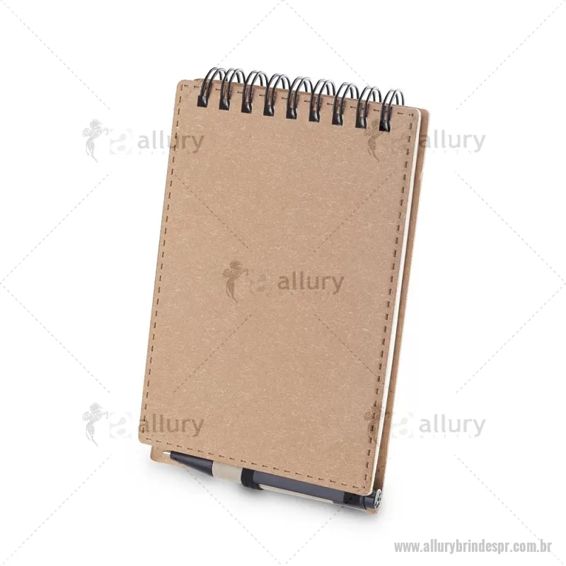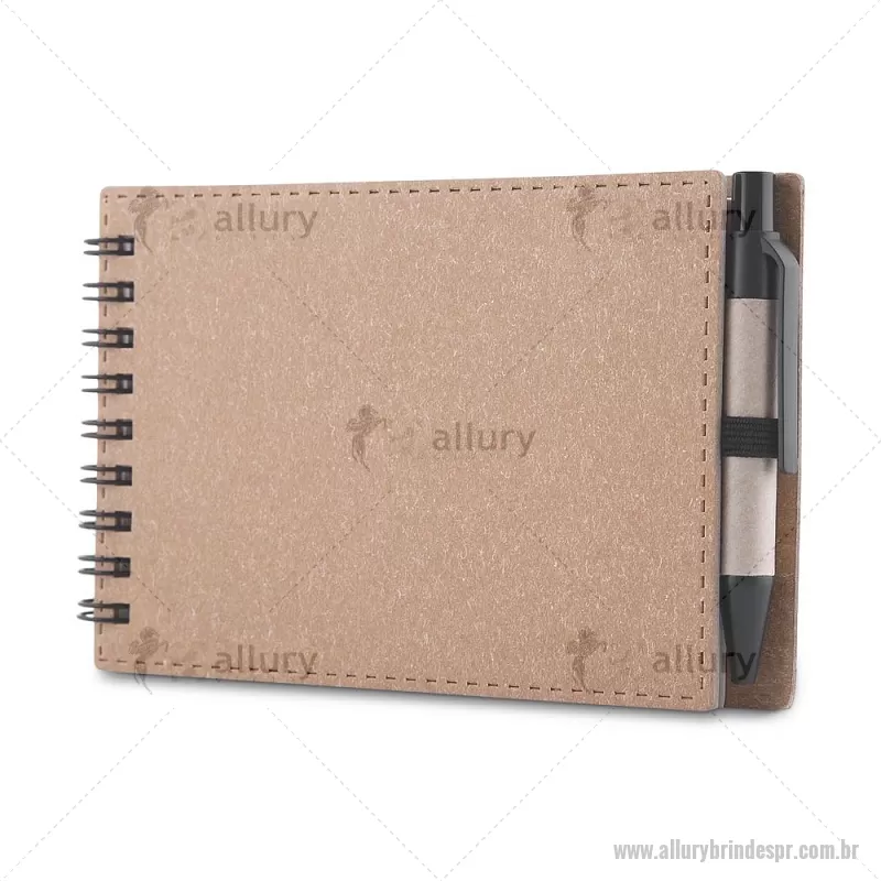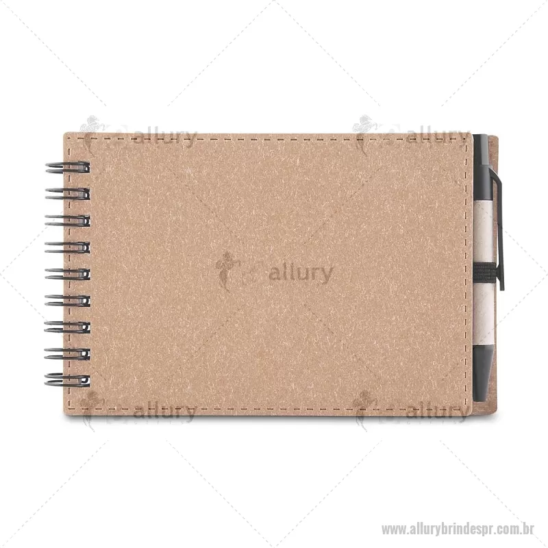 Mini Bloco/ Caderno A6 de anotações com caneta Mini Caderno com capa em papelão e encadernação espiral wire-o, 70 folhas sem pauta em 70g/m². Acompanha caneta confeccionada em papelão reciclado com detalhe em plástico. Dimensão Produto: 14x9cm (Caderno) Dimensão Produto: 8,3xø1cm (Caneta) Peso do Produto: 0,084kg - - ALLPRBLC277