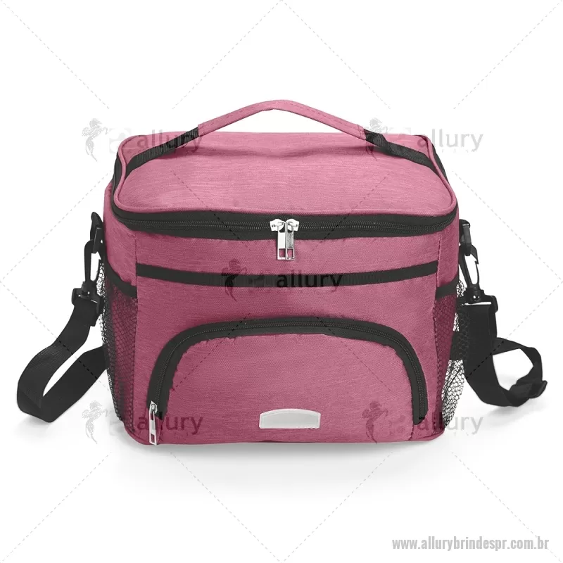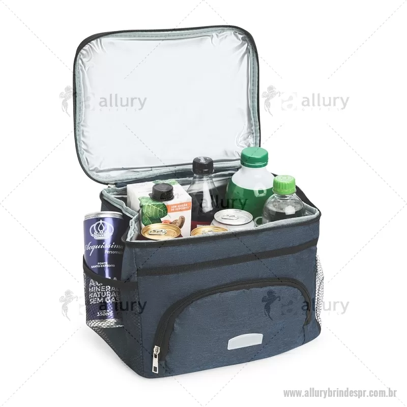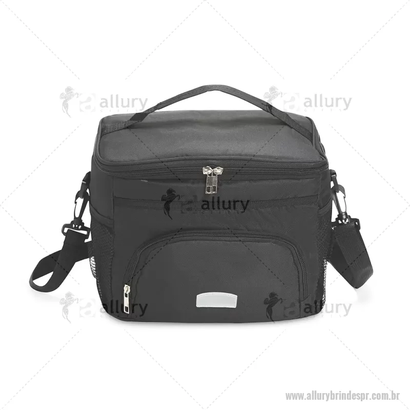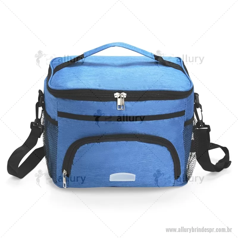 Bolsa térmica de 10 litros feita em poliéster resistente à água, com revestimento interno em PVC laminado. Conta com bolso frontal com zíper, dois bolsos laterais em tela, alça superior fixa e alça transversal removível. Prática e ideal para levar alimentos e bebidas no dia a dia. - - ALLPRBT103