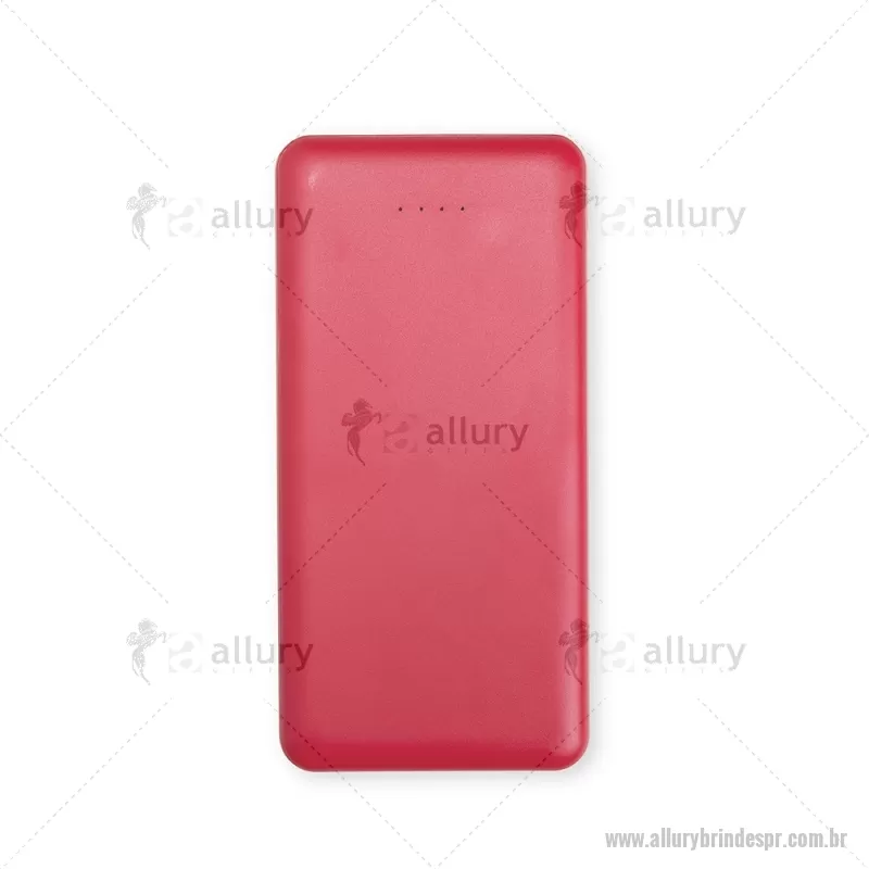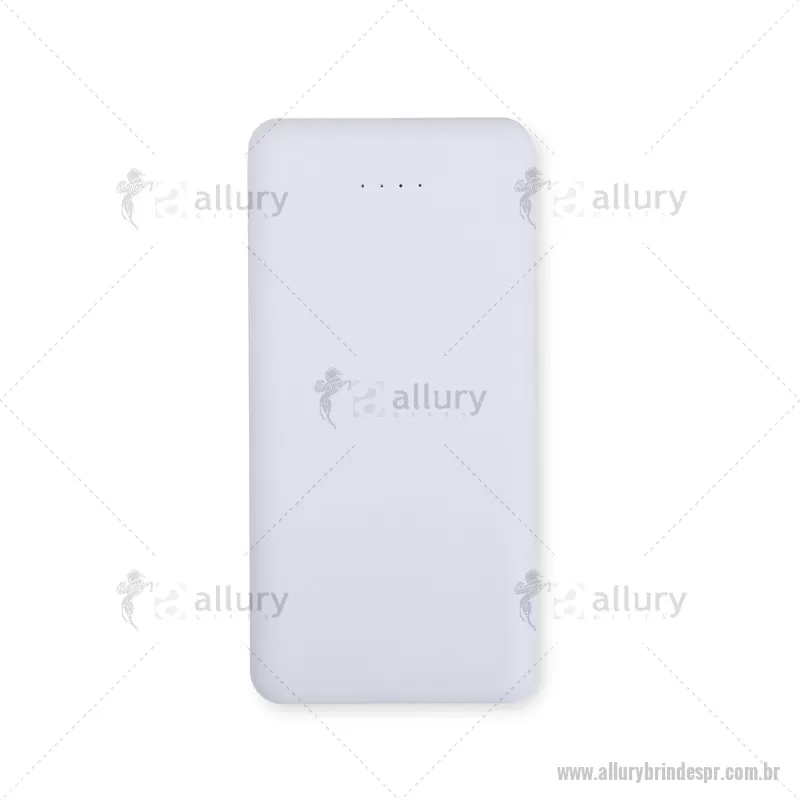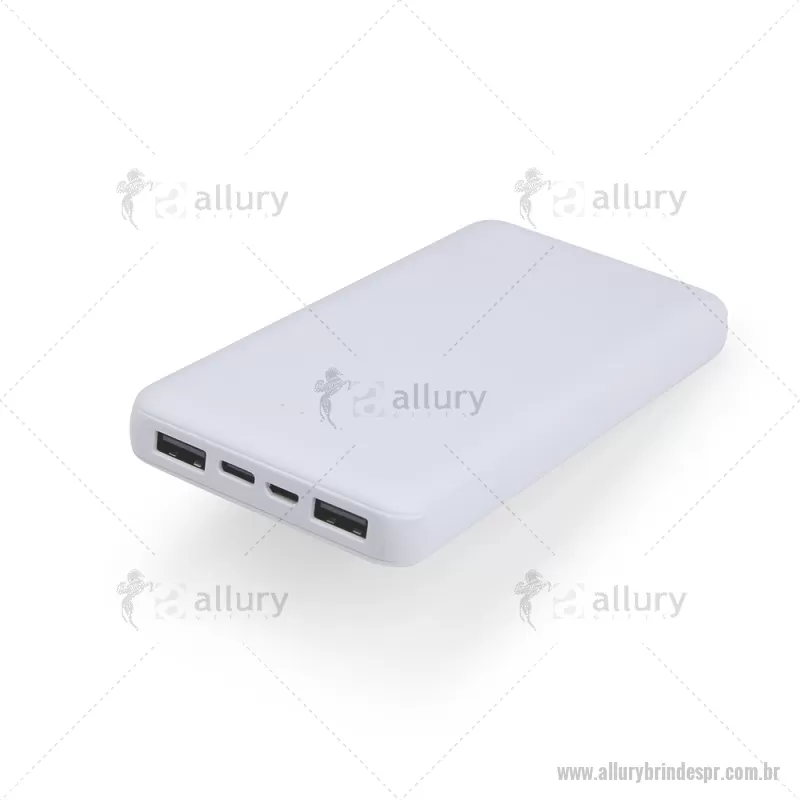 Power Bank 10.000mAh com Indicador LED Descrição: Power bank com estrutura em plástico com potência de 10.000mAh e quatro luzes de LED para indicar o status de carga do próprio carregador portátil. Possui quatro entradas diferentes: duas portas USB, uma porta Micro USB e outra USB-C. Altura : 14 cm x Espessura : 1,5 cm x Comprimento : 7 cm Peso aproximado (g): 243 - - ALLPRTEC531