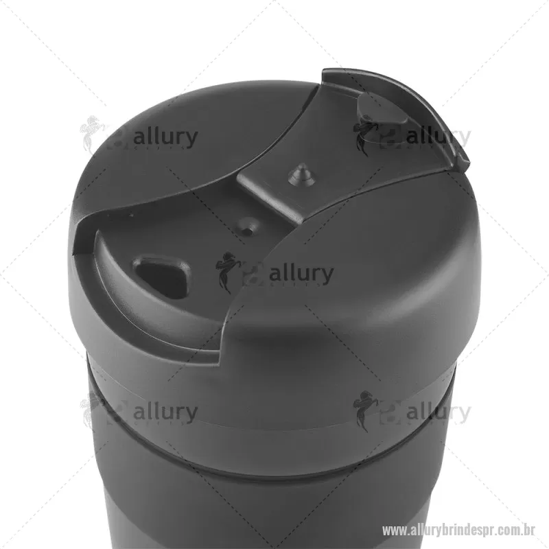 Caneca em aço inox parede dupla, conserva temperatura, pegador em silicone e bico com tampa. Capacidade 350ml. - - ALLPRCPO074
