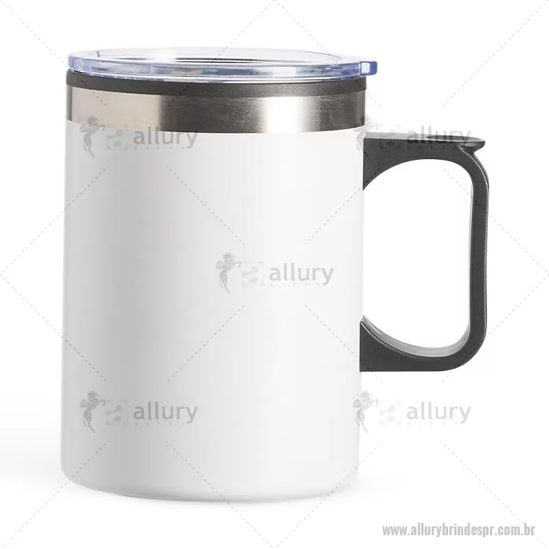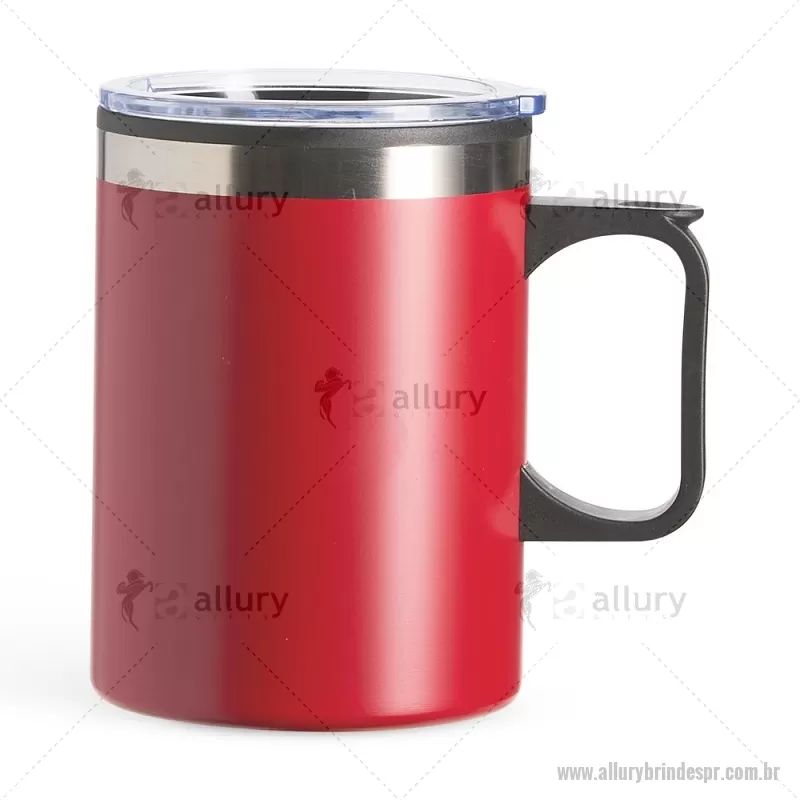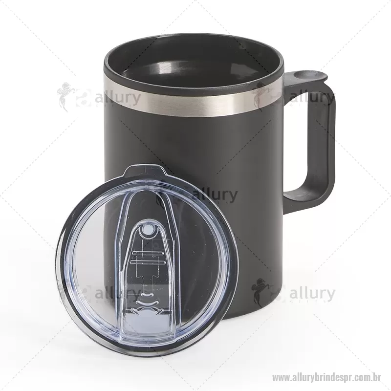 Caneca de 375 ml com interior plástico e revestimento externo em inox, que evita o aquecimento das mãos. Possui tampa com bocal e trava de segurança, além de base emborrachada antiderrapante. Prática e ideal para o dia a dia. - - ALLPRCAN098