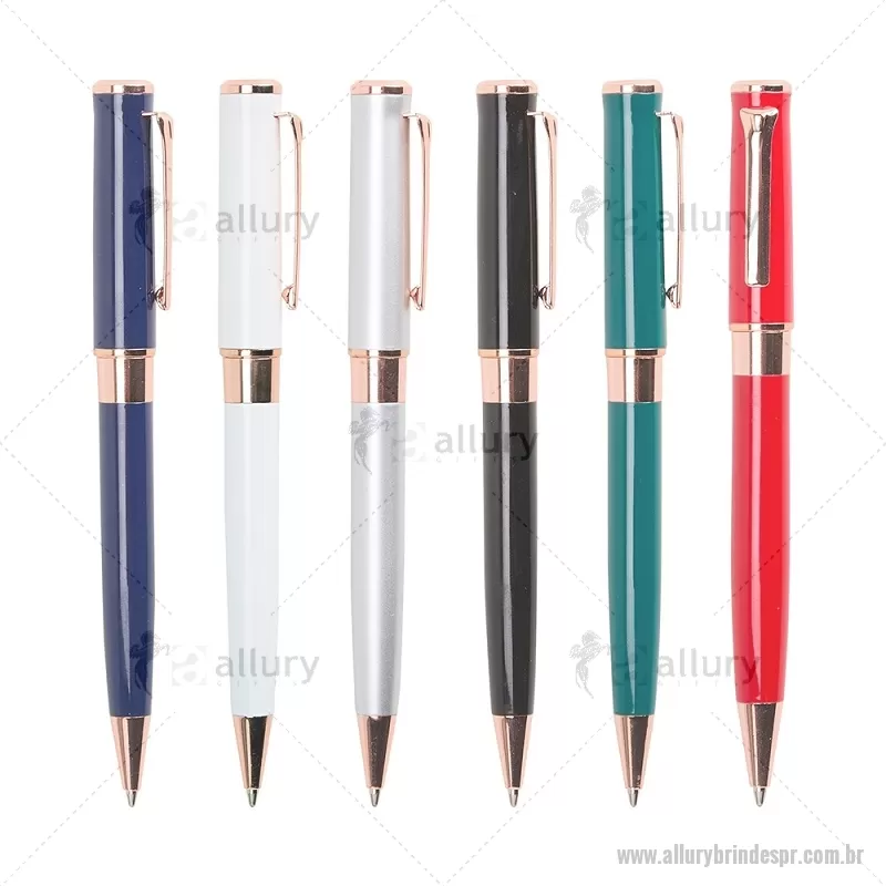 Caneta esferográfica com tinta azul 1,0 mm, acionamento por rotação e corpo totalmente metálico. Seu design oferece escrita suave, confortável e precisa, ideal para uso diário ou profissional. - - ALLPRCMT300
