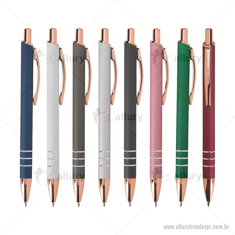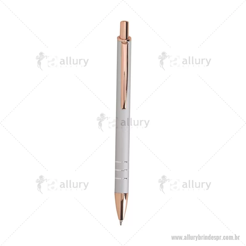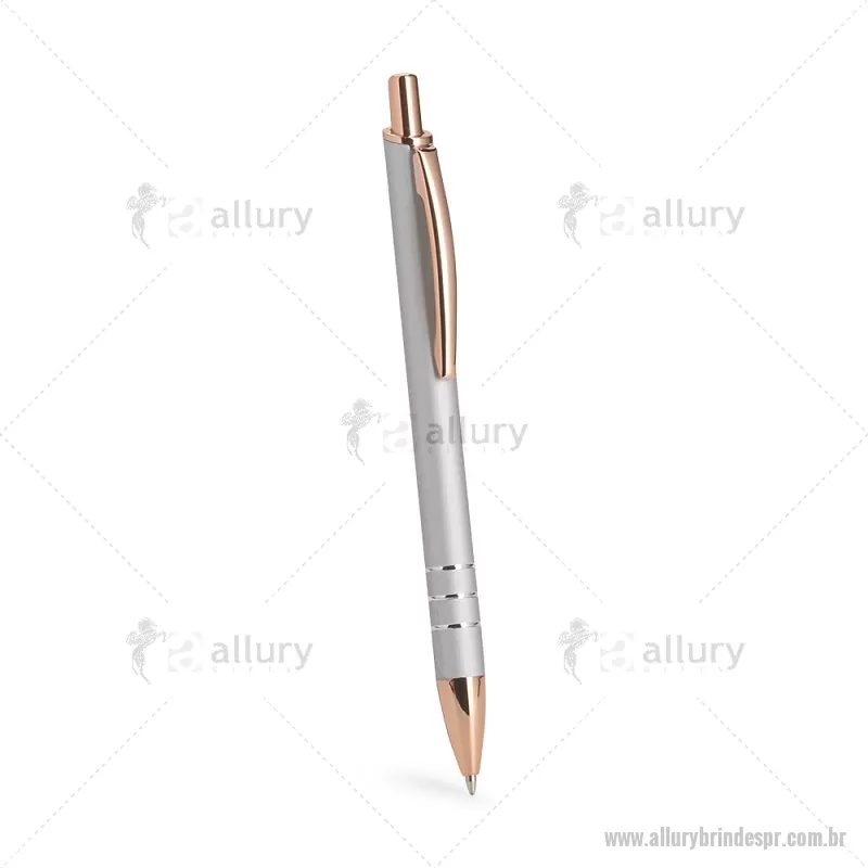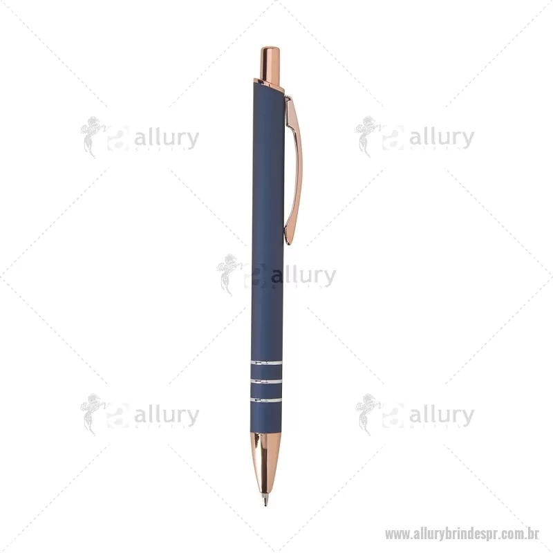 Caneta em metal com acionamento por clique e carga esferográfica azul de 1,0 mm. Leve e confortável, garante escrita precisa e uso prático no dia a dia. - - ALLPRCMT303
