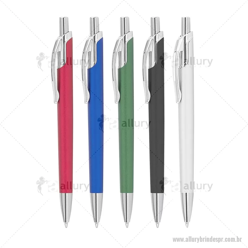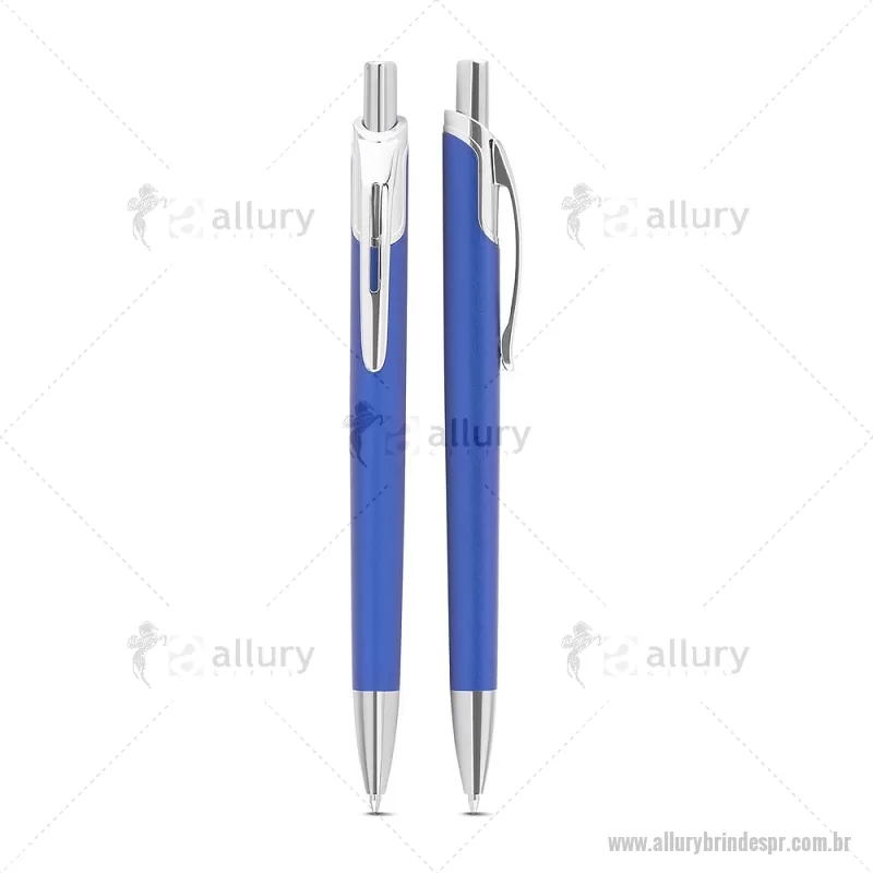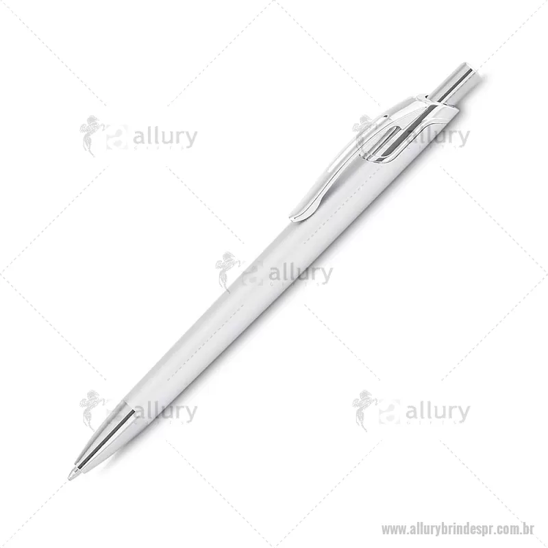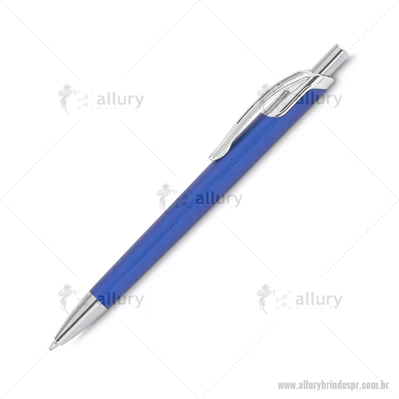 Caneta com corpo em alumínio reciclado, acionador e clipe cromado, escrita esferográfica em azul. Peso do Produto: 0,016kg Dimensão do Produto: 14ø1cm - - ALLPRCMT305