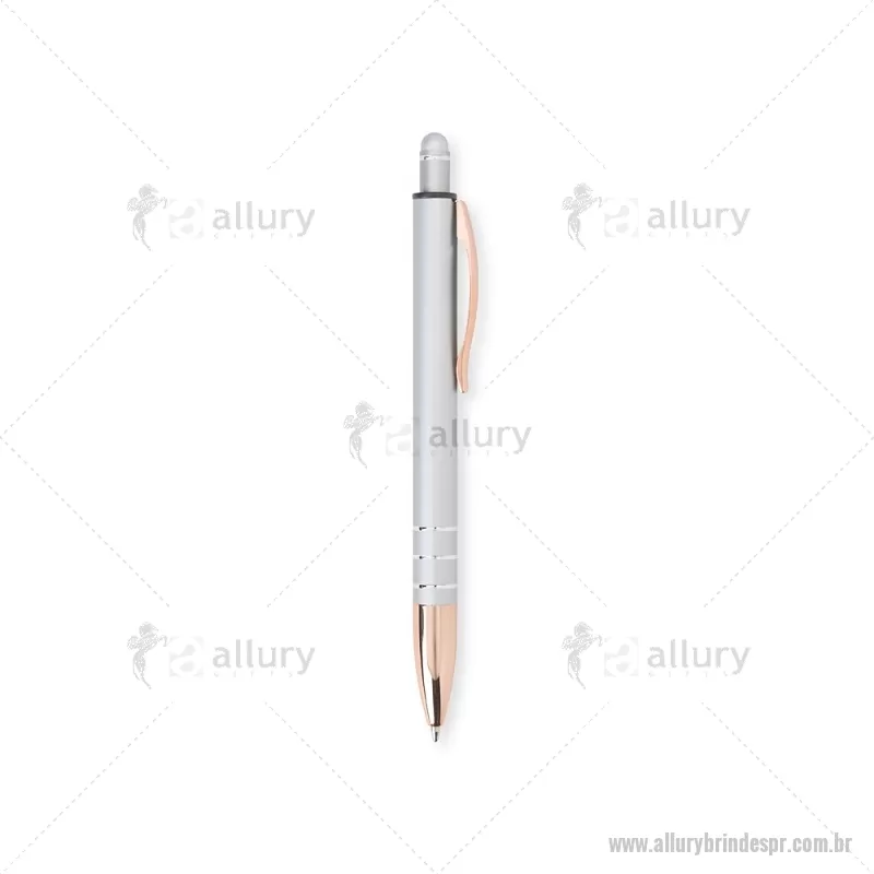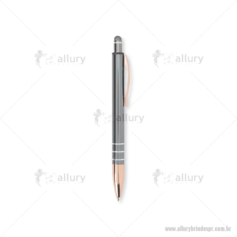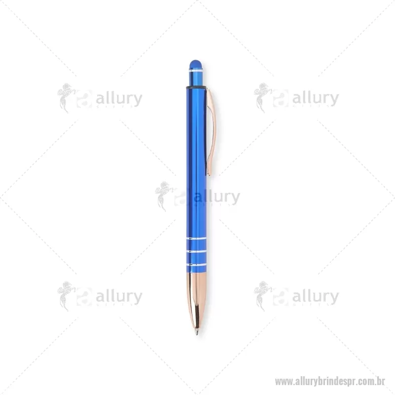 Caneta Metal Touch Caneta metálica com acionador touch, clipe metálico e ponteira plástica. Carga esferográfica azul 1.0mm e acionamento por clique. Largura : 1,6 cm x Comprimento : 14,4 cm Peso aproximado (g): 17 - - ALLPRCMT291