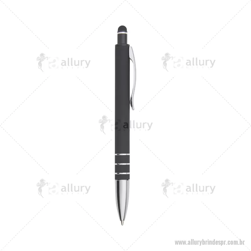Caneta Metal Touch Caneta metálica touchscreen com acabamento emborrachado, acionamento por clique e carga esferográfica azul 1.0mm. Altura : 14,4 cm x Largura : 1,6 cm Peso aproximado (g): 18 - - ALLPRCMT292