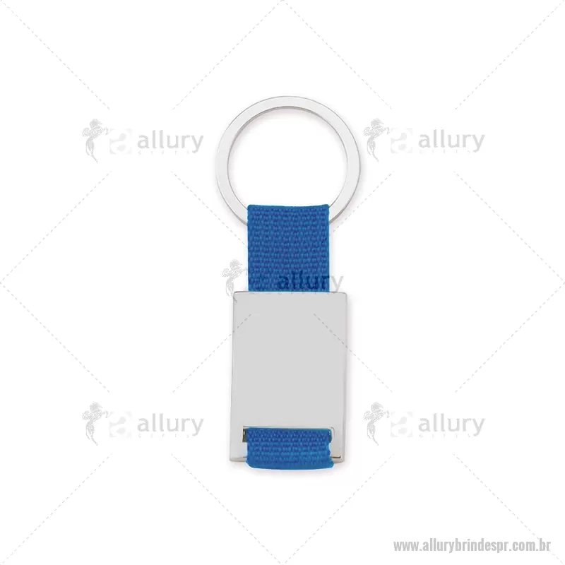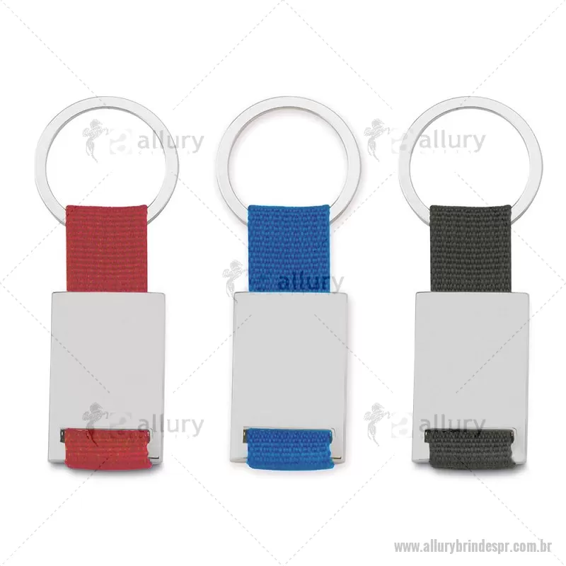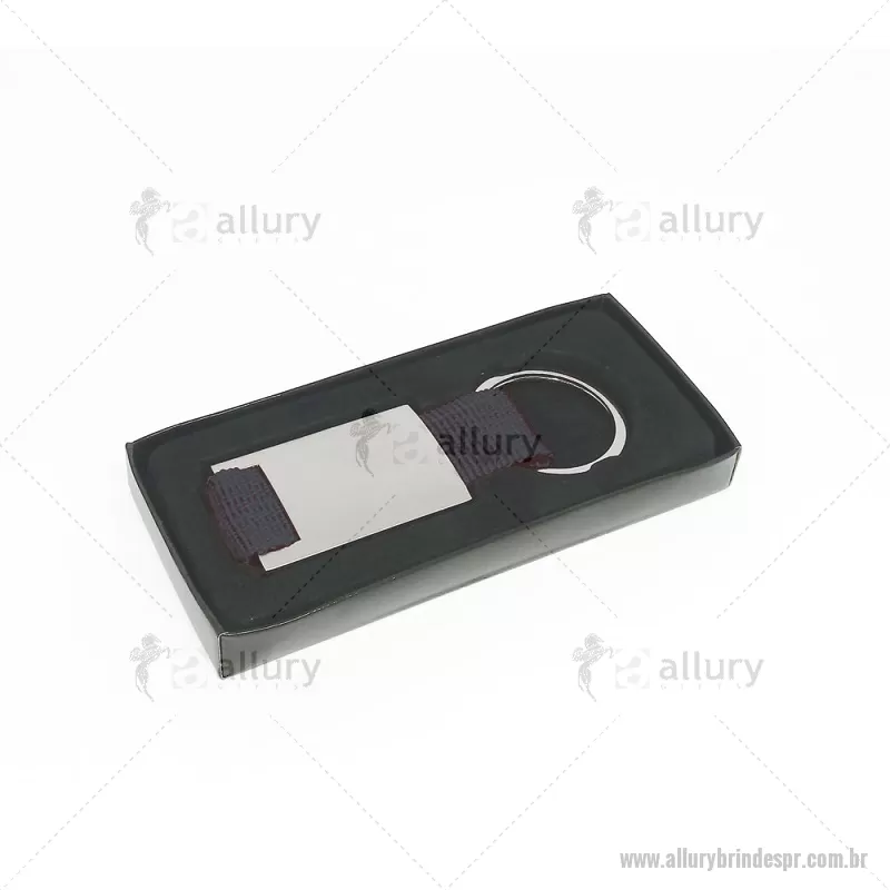 Chaveiro de metal retangular com detalhes em nylon + caixa com berço aveludado. Obs.: Frente e versão são iguais. Dimensão Produto: 8,5x3,4cm (AxL) Peso do Chaveiro: 0,025kg Peso do berço aveludado: 9g - - ALLPRCHV214