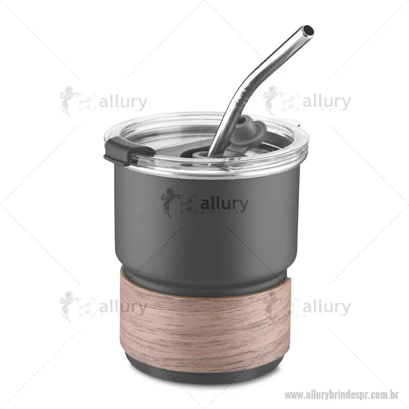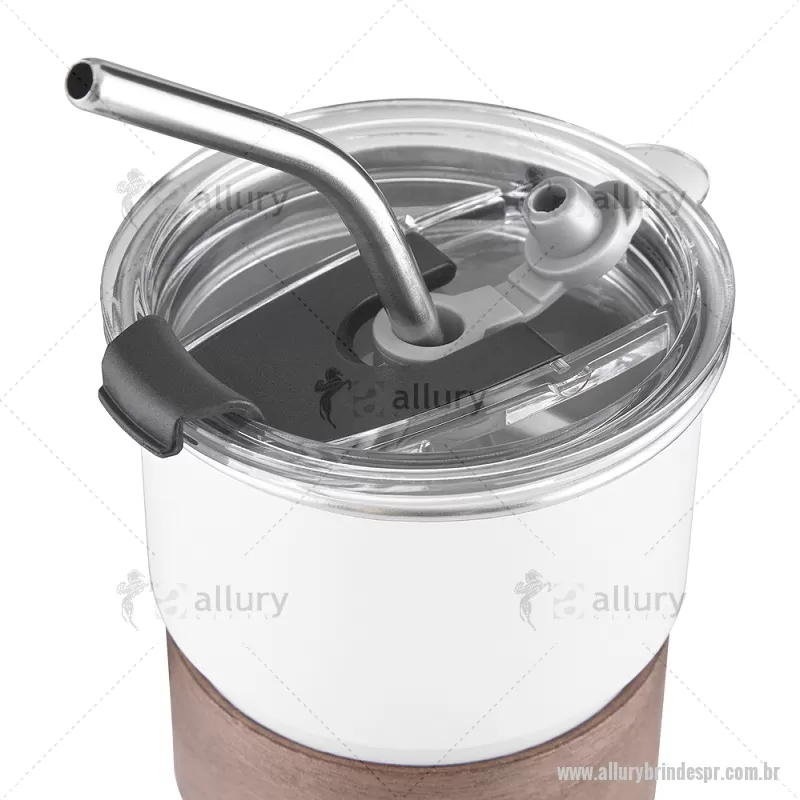Copo em inox com Canudo Copo de parede simples em aço inox 304 com capacidade de 250ml, com canudo em inox. Tampa em plástico poliestireno (PS) que também possui um bico como forma alternativa de uso. Com pegador em fibra de noz. Possui acabamento externo com pintura fosca. Peso do Produto: 0,100kg Dimensão do Produto: 9xø7,5cm - - ALLPRCPO150