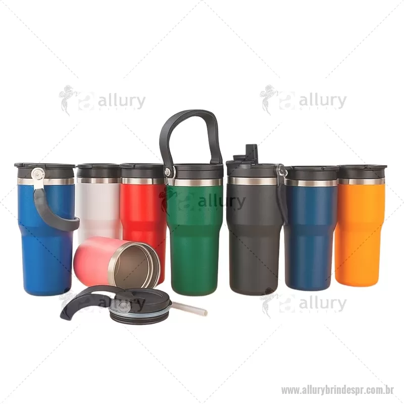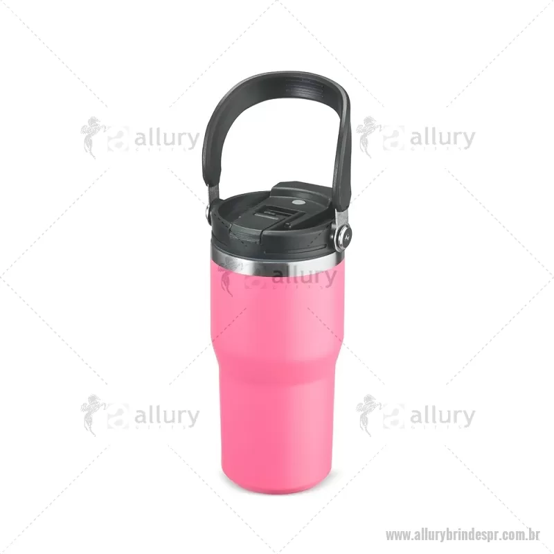 Copo térmico de 600 ml em inox com pintura eletrostática e parede dupla com vedação a vácuo, ideal para manter a temperatura das bebidas por mais tempo. Possui tampa rosqueável com bico flip e proteção para o bocal, canudo interno removível e alça fixa para transporte. Prático e resistente para o dia a dia. - - ALLPRCPO149