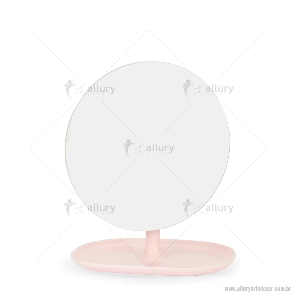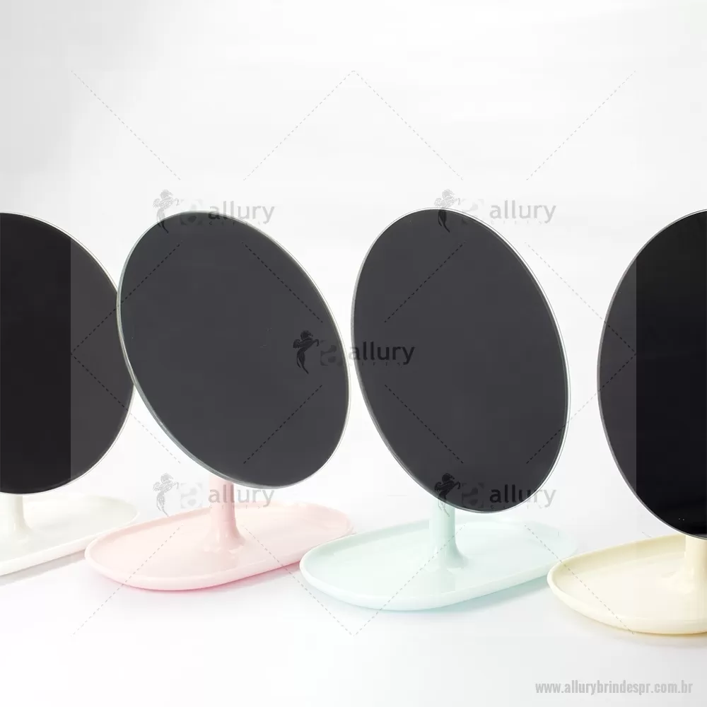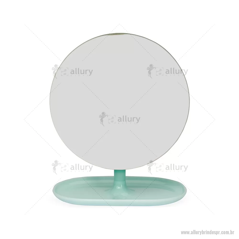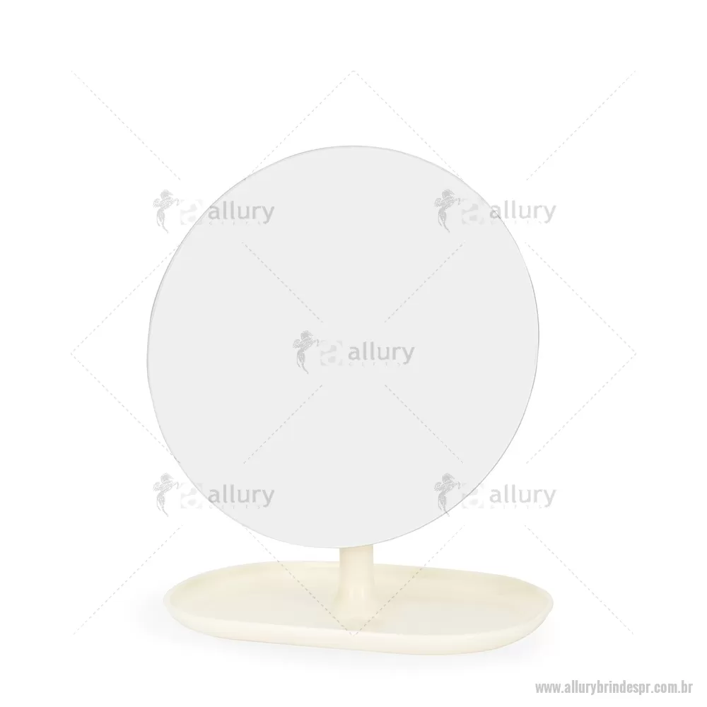 Espelho de Mesa Plástico Descrição: Espelho de mesa com estrutura compacta em plástico de fácil montagem. Conta com base fixa e pedestal giratório em 360 graus que permite ajuste prático em diferentes ângulos e posições. Altura : 25 cm x Largura : 10,7 cm x Comprimento : 15,8 cm Tamanho total aproximado (CxL): Diâmetro: 16 cm Peso aproximado (g): 195 - - ALLPRFEM118