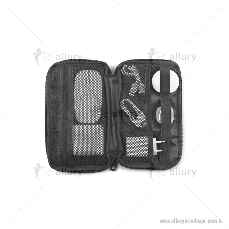Bolsa organizadora em poliéster reciclado 600D de alta densidade com compartimento principal espaçoso para acessórios tecnológicos Bolsa organizadora para acessórios tecnológicos, recomendada para cabos, carregadores e pequenos dispositivos. Composta por poliéster reciclado 600D de alta densidade e forro em poliéster reciclado 210D. O compartimento principal contém vários bolsos para organizar individualmente todos os seus acessórios de maneira personalizada e funcional. Medidas: 220 x 130 x 25 mm Peso do Produto (g.): 72 - - ALLPREMB047