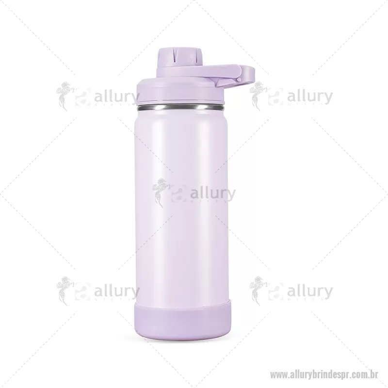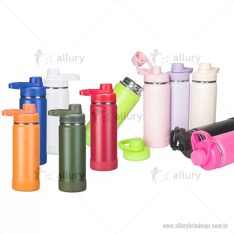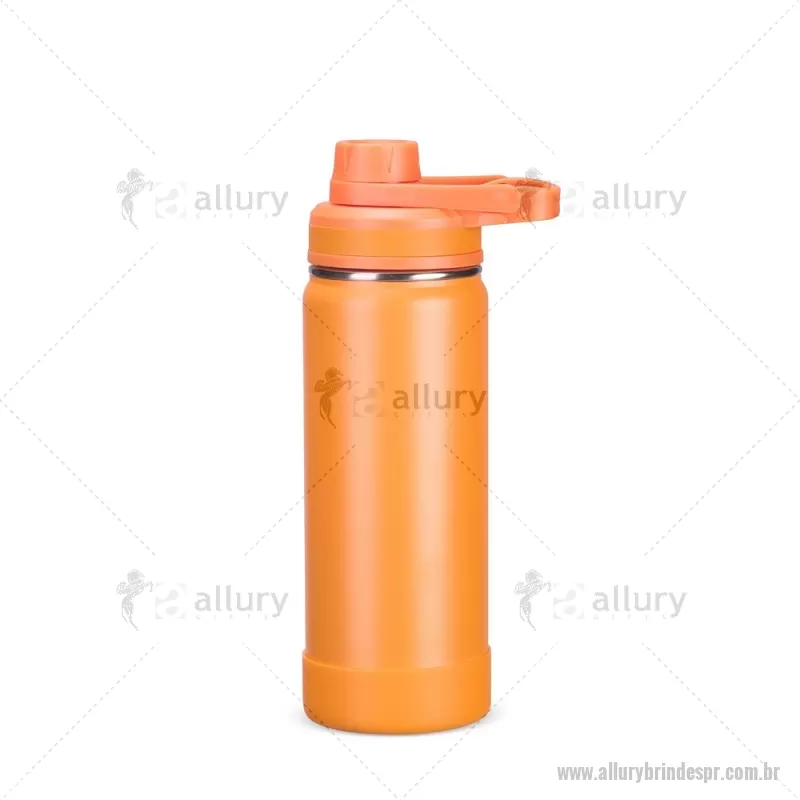 Garrafa Térmica 550ml inox com pintura eletrostática. Mantém a temperatura de líquidos por mais tempo graças à estrutura de parede dupla e ao isolamento a vácuo. Possui tampa plástica rosqueável com protetor de bocal e alça fixa. Acompanha protetor removível em silicone para a base. Altura : 22,5 cm x Largura : 7,4 cm x Circunferência : 23,3 cm Tamanho total aproximado (CxL): Diâmetro: 5,5 cm Peso aproximado (g): 290 - - ALLPRGAT172