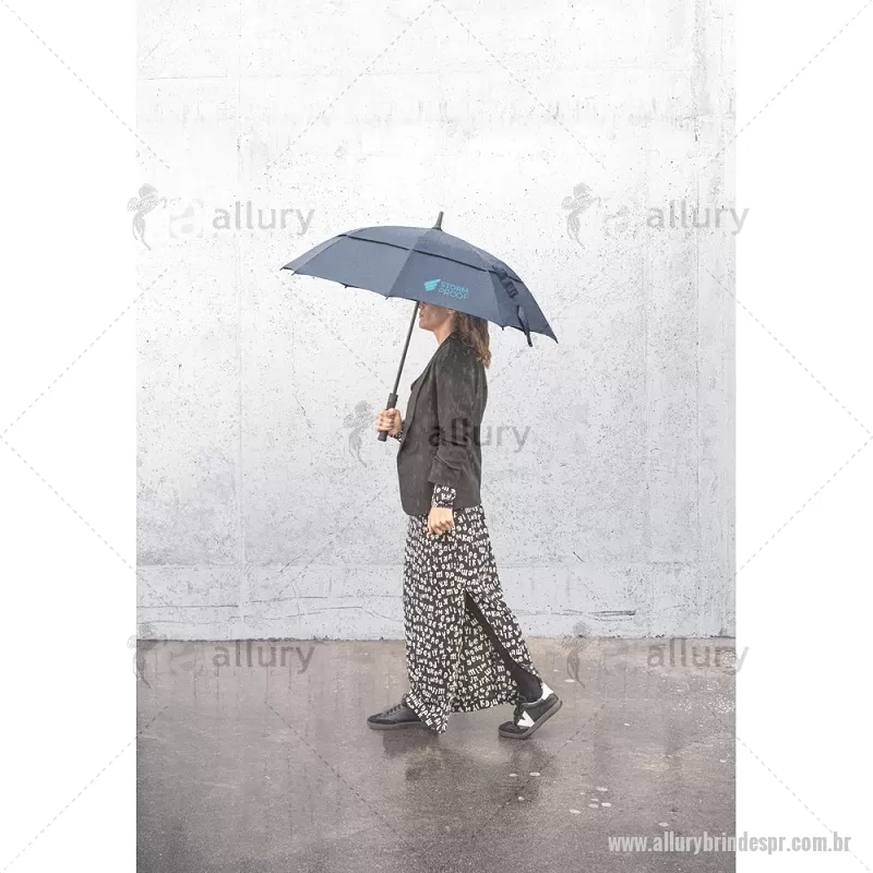 Guarda-chuva em 100% poliéster reciclado 190T (100% rPET) com abertura automática, com varetas em fibra de vidro e pega em ABS reciclado. Guarda-chuva com abertura automática e à prova de vento. Fornecido em bolsa de poliéster reciclado. Medidas:ø1055 x 840 mm Peso do Produto (g.): 543 - - ALLPRGCH051