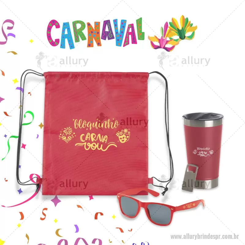 Kit Carnaval 3 Peças Kit Torcida Copa do Mundo Contém: 1 Mochila Saco em Poliéster Tamanho total aproximado (CxL): 41 cm x 34 cm - Gravação em Silk screen 1 cor (MCS032) 1 Copo Térmico 500ml com tampa e abridor de garrafa. Confeccionados com dupla parede de inox, isolada a vácuo. Conservação aproximada líquidos quentes: 1h / Conservação aproximada líquidos gelados: 7h / Conservação aproximada líquidos com gelo: 15h Ideal para bebidas geladas ou quentes. - Gravação laser.(CPO083) 1 Óculos de sol personalizável com proteção de 400 UV. Consultar cores disponíveis. - Gravação em Silk screen 1 cor (OCL001) * Verificar cores de produtos Disponíveis. - - ALLPRKIT029