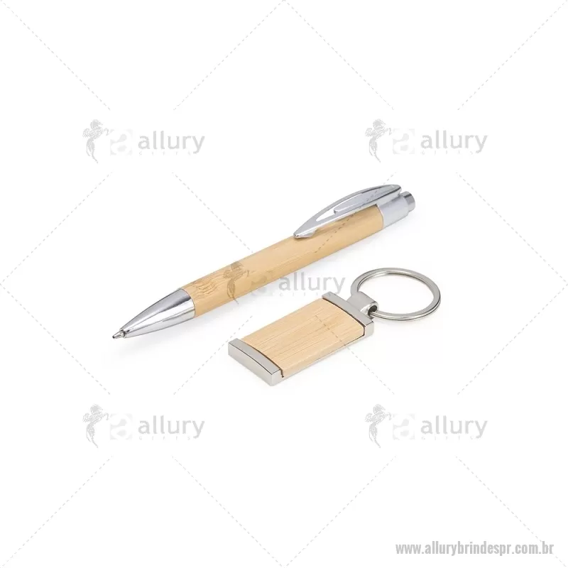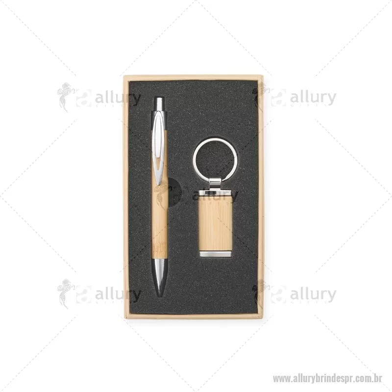 Kit Caneta e Chaveiro Bambu Este kit é a escolha ideal para quem aprecia praticidade e um design natural. O estojo com espuma interna mantém a caneta e o chaveiro bem organizados e protegidos, prontos para o uso. Combinando metal e bambu, as peças têm um visual elegante e resistente, destacando a beleza natural do bambu em cada detalhe. Uma opção funcional e charmosa, perfeita para o dia a dia ou para presentear com bom gosto e simplicidade. Largura : 9,7 cm x Comprimento : 16,9 cm Peso aproximado (g): 101 - - ALLPRKES071