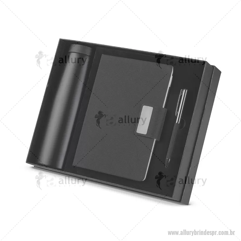 Kit escritório Caderno, Garrafa e Caneta Metalica Conjunto composto por caderno em material RPET com fechamento magnético,com 100 páginas, caneta modelo twist com detalhe em tecido RPET preto e garrafa de parede dupla em inox (304 interno e 201 externo), com capacidade de 550ml. Acompanha caixa presenteável. Peso do Produto: 0,256kg (Caderno) Peso do Produto: 0,277kg (Garrafa) Peso do Produto: 0,019kg (Caneta) Peso do Produto: 0,491kg (Caixa) Dimensão do Produto: 23,5x7,1cm (Garrafa) Dimensão do Produto: 21x14,5cm (Caderno) Dimensão do Produto: 7,6x30x24,7cm (Estojo presenteável) - - ALLPRKES083