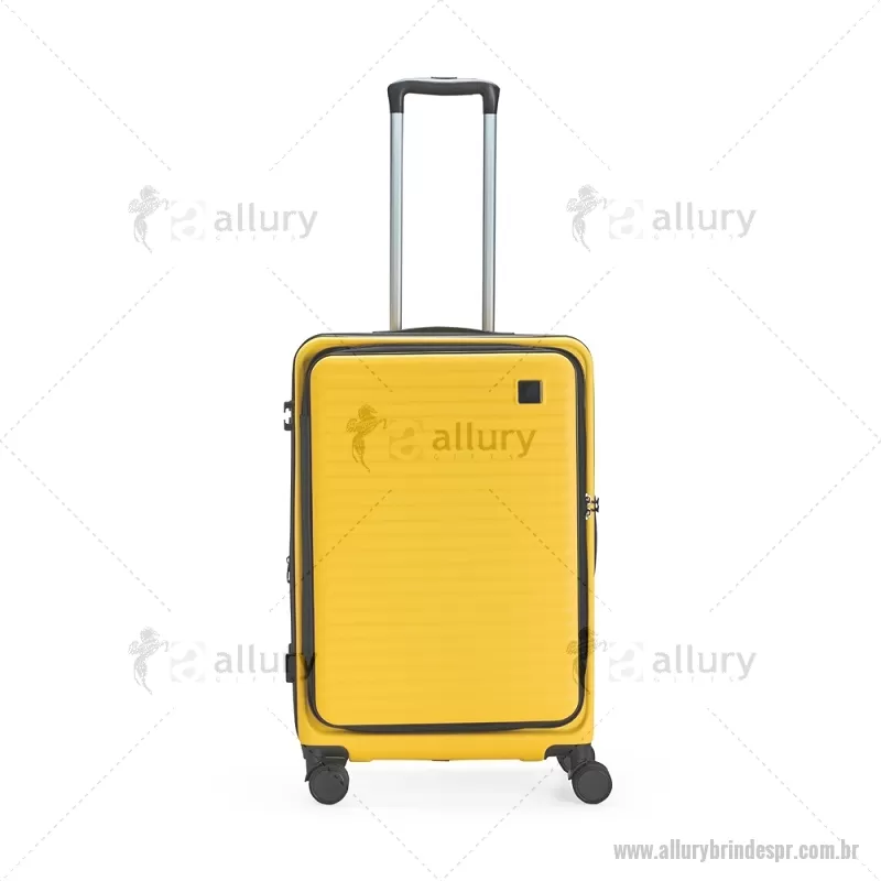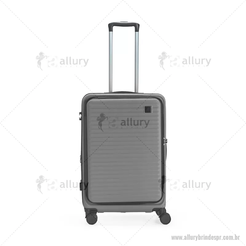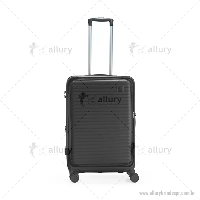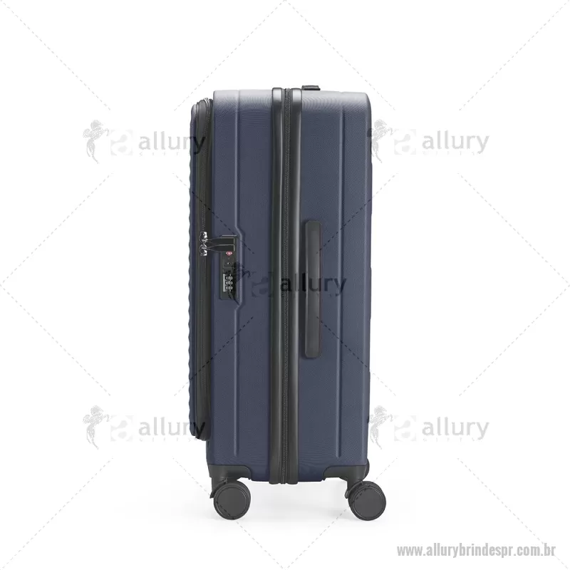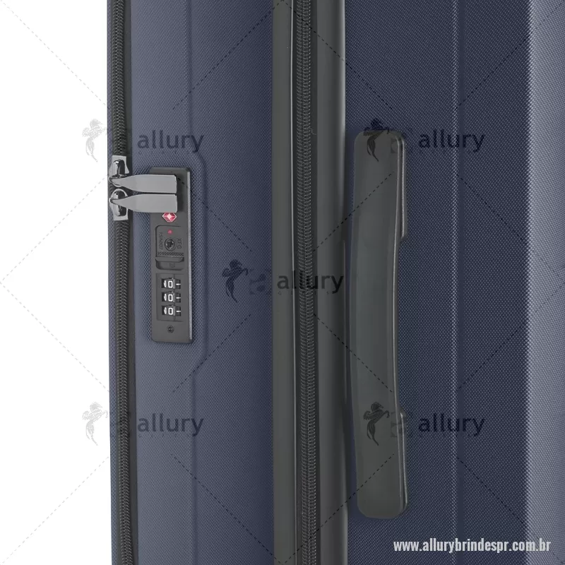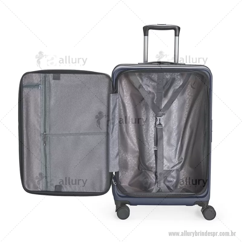 Mala de viagem com capacidade de 66 litros, fabricada em plástico ABS resistente e equipada com cadeado TSA embutido para maior segurança. Possui abertura frontal com compartimentos internos organizadores, zíperes e cinta compressora, além de zíper expansível que amplia o espaço interno. Conta com puxador retrátil de três níveis, duas alças de mão, apoios e ganchos laterais, além de rodinhas com giro 360° para deslocamento fácil. Acompanha plaquinha metálica grafite para personalização. - - ALLPRMC250