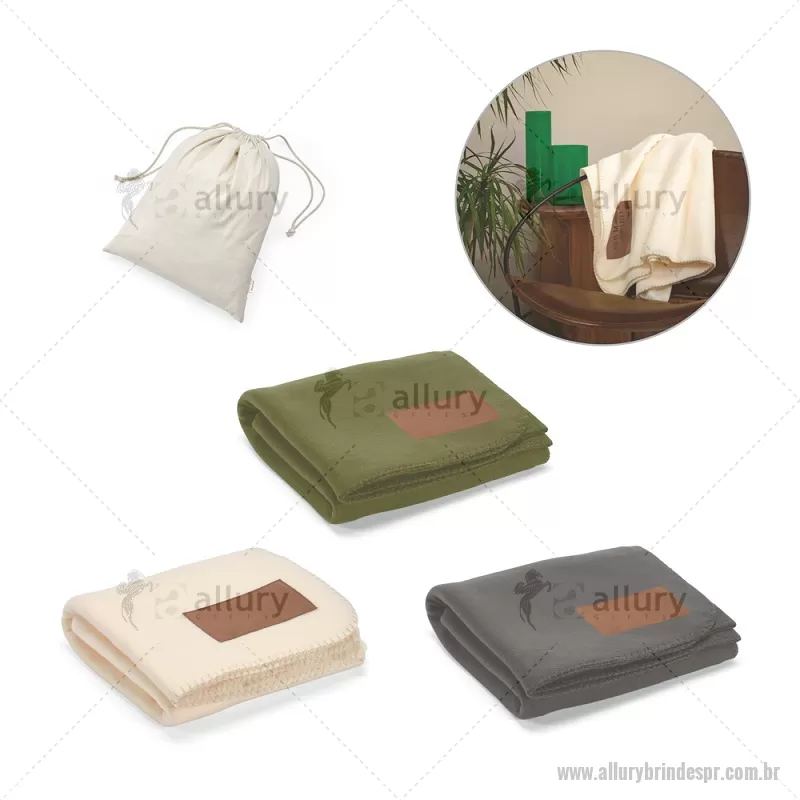 Manta em tecido polar, 100% poliéster reciclado (100% rPET), com área para personalização em microfibra. Fornecido em saco de tecidos 100% reciclado (70% algodão reciclado e 30% poliéster reciclado), com gramagem de 140 g/m². Medidas: 1600 x 1200 mm | Saco: 400 x 320 mm Peso do Produto (g.): 620 - - ALLPRMAT007